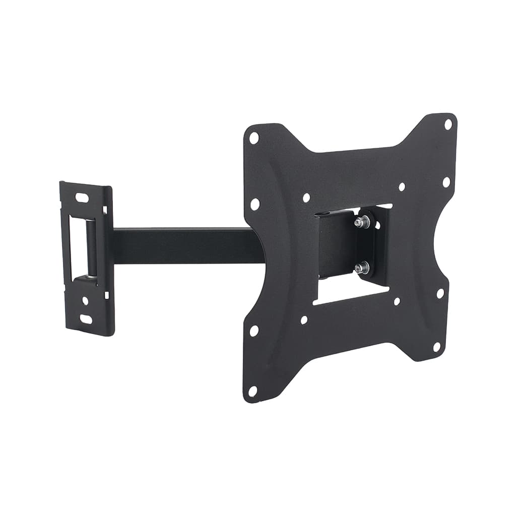 для монітора, для телевізора, Тип - поворотно-похилий, кількість ступенів свободи - 3, мінімальна підтримувана діагональ - 19", максимальна підтримувана діагональ - 43", VESA - 75 x 75, 100 x 100, 200 x 100, 200 x 200, Максимальне навантаження - 25 кг, Нахил - 15° ~ -5°, кронштейн у складеному вигляді, інструкція, гарантійний аркуш, дюбель 10х50 (3 шт.), гвинт 6х60 (3 шт.), шайба М8 (3 шт.), заглушка пластикова (3 шт.), гвинт 4х12 (4 шт.), шайба збільшена М4 (4 шт.), гвинт 6х30 (4 шт.), гвинт 8х45 (4 шт.), пластиковий адаптер (8 шт.), ключ шестигранний (1 шт.), пластикова стяжка (4 шт.), чорний