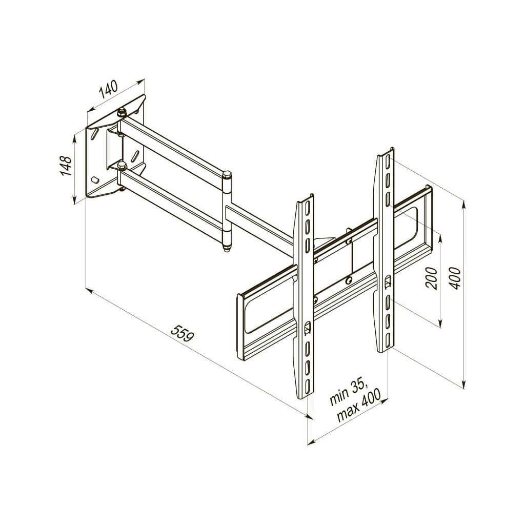 для телевізора, Тип - поворотно-похилий, кількість ступенів свободи - 4, мінімальна підтримувана діагональ - 32", максимальна підтримувана діагональ - 65", VESA - 100 x 300, 200 x 200, 200 x 300, 300 x 200, 200 x 400, 300 x 300, 400 x 200, 400 x 300, 400 x 400, 100 x 200, 300 x 400, Максимальне навантаження - 30 кг, Нахил - 15° ~ -5°, кронштейн в зборі, кріпильні планки (2 шт.), Інструкція, гарантійний лист, дюбель 12х80 (6 шт.), Гвинт 8х80 (6 шт.), Шайба М8 (6 шт.), Заглушка пластикова (6 шт.), Гвинт 6х30 ( 4шт), гвинт 8х20 (4 шт.), гвинт 8х45 (4 шт), пластиковий адаптер (8 шт.), ключ шестигранний (1шт.), пластикова стяжка (4 шт.)., чорний