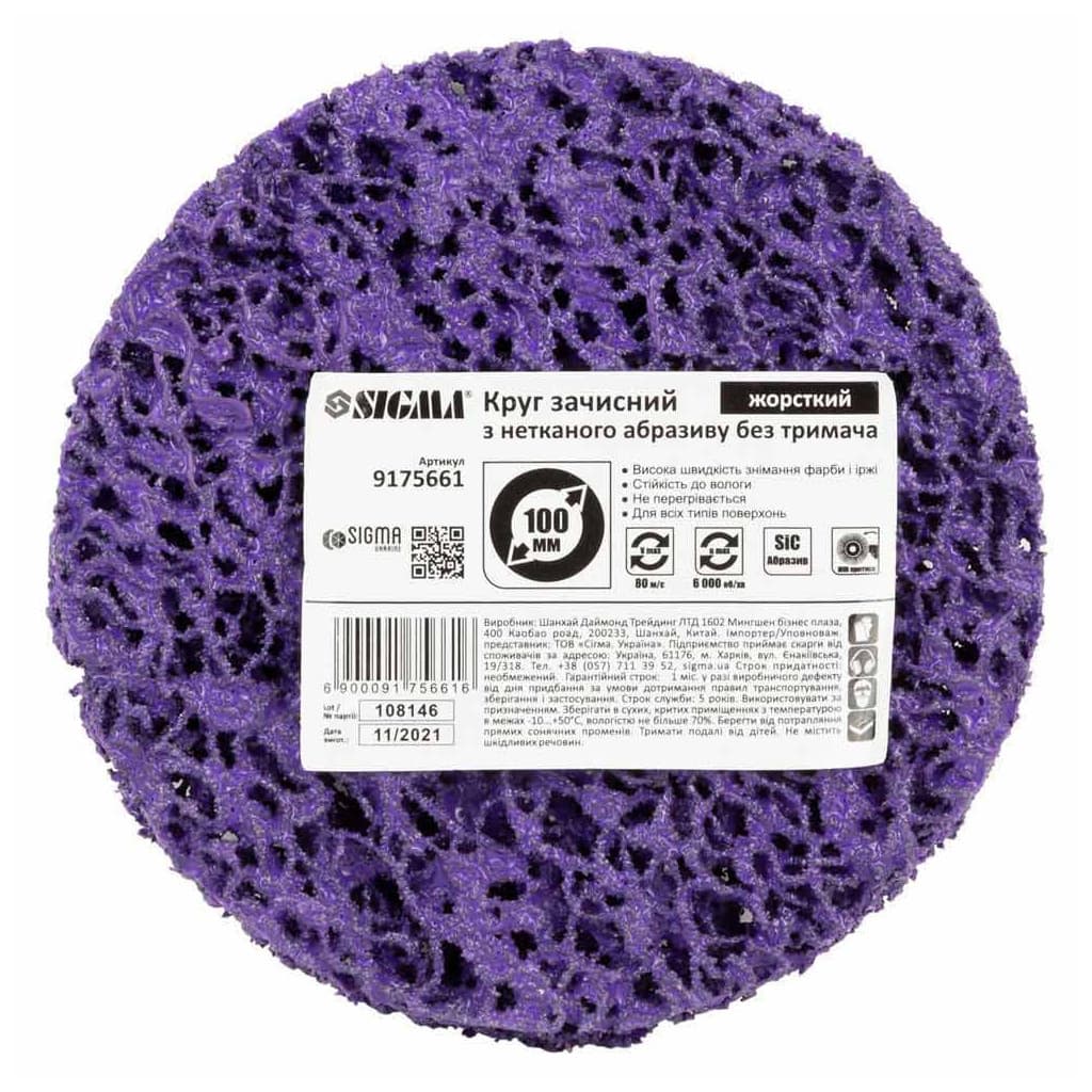 Круг зачистний Sigma з нетканого абразиву (корал) 100мм без тримача фіолетовий твердий (9175661)
