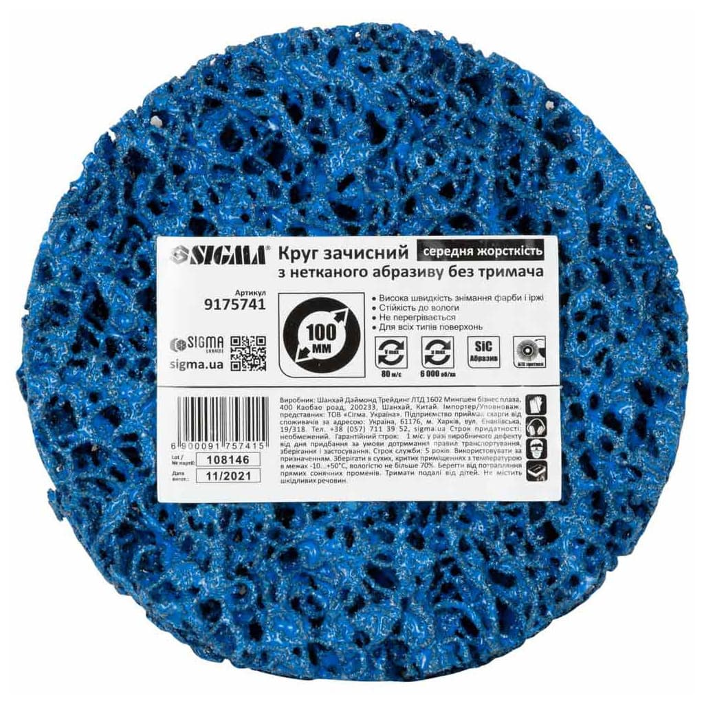 Круг зачистний Sigma з нетканого абразиву (корал) 100мм без тримача синій середня жорсткість (9175741)