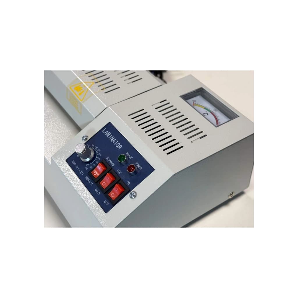Тип - конвертний, Призначення - для офісу, Формат - A3, Потужність - 550 Вт, максимальна ширина ламінування - 330 мм, максимальна товщина ламінування - 1 мм, швидкість ламінування - 560 мм/хв, метод нагрівання - зовнішній обігрів валів, 500 х 208 х 110 мм