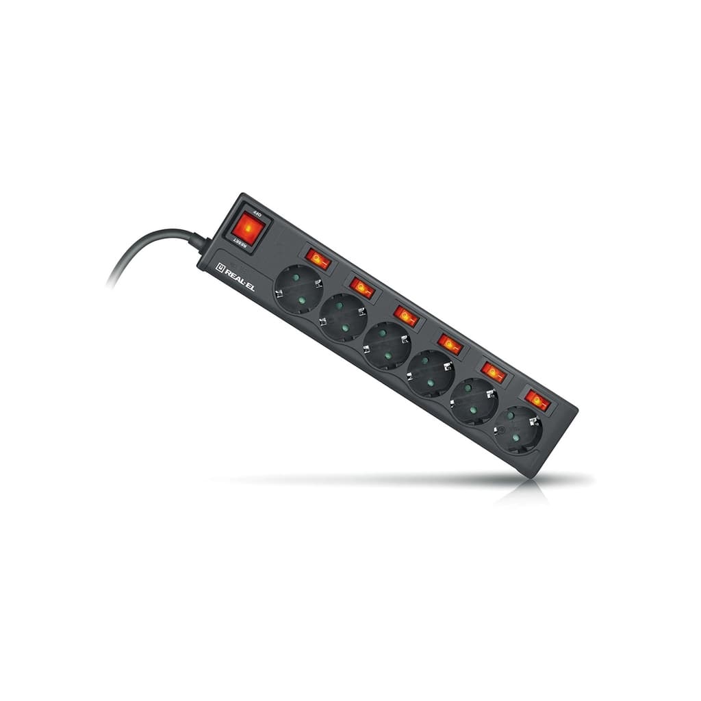 Мережевий фільтр живлення REAL-EL RS-6 EXTRA 5m, black (EL122300003)