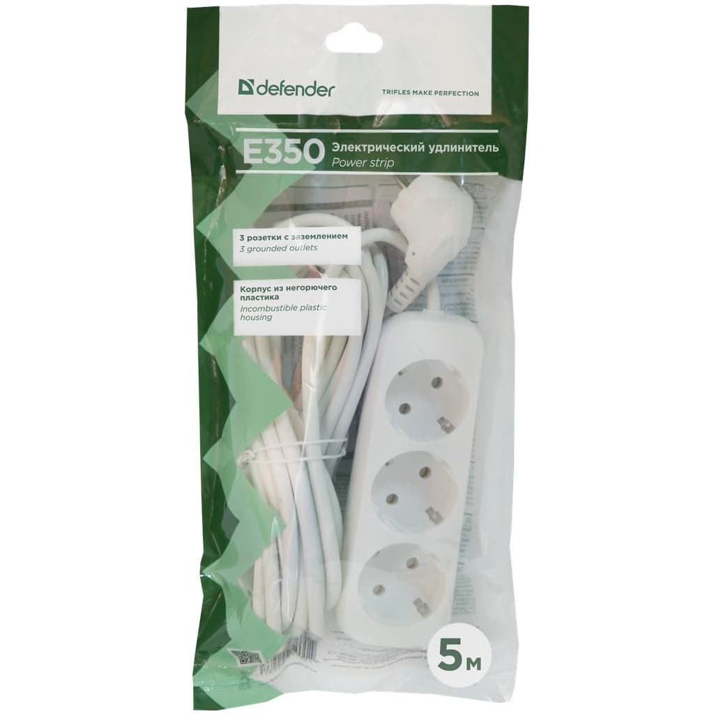 Мережевий подовжувач Defender E350 5.0 m 3 роз white (99223)