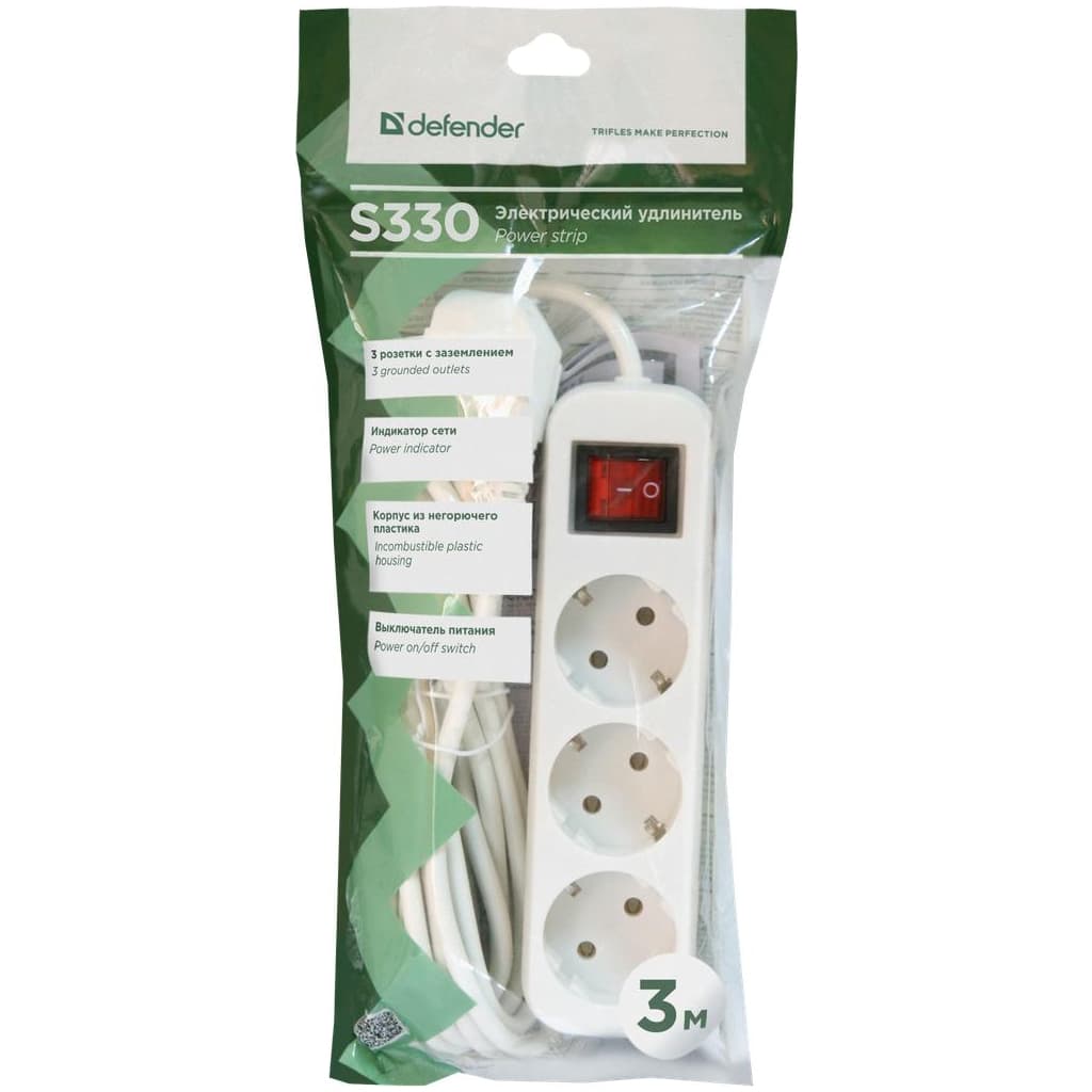 Мережевий подовжувач Defender S330 3.0 m 3 роз switch white (99234)