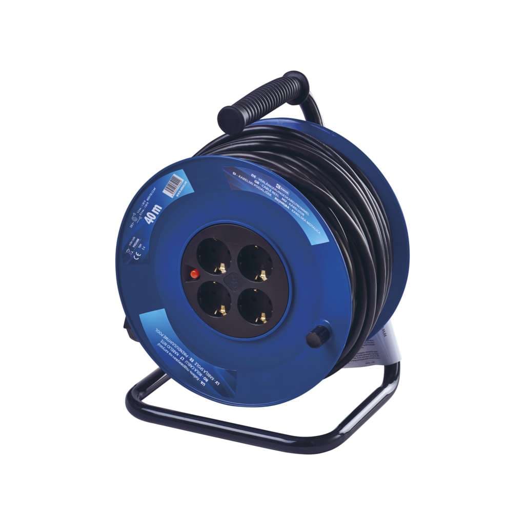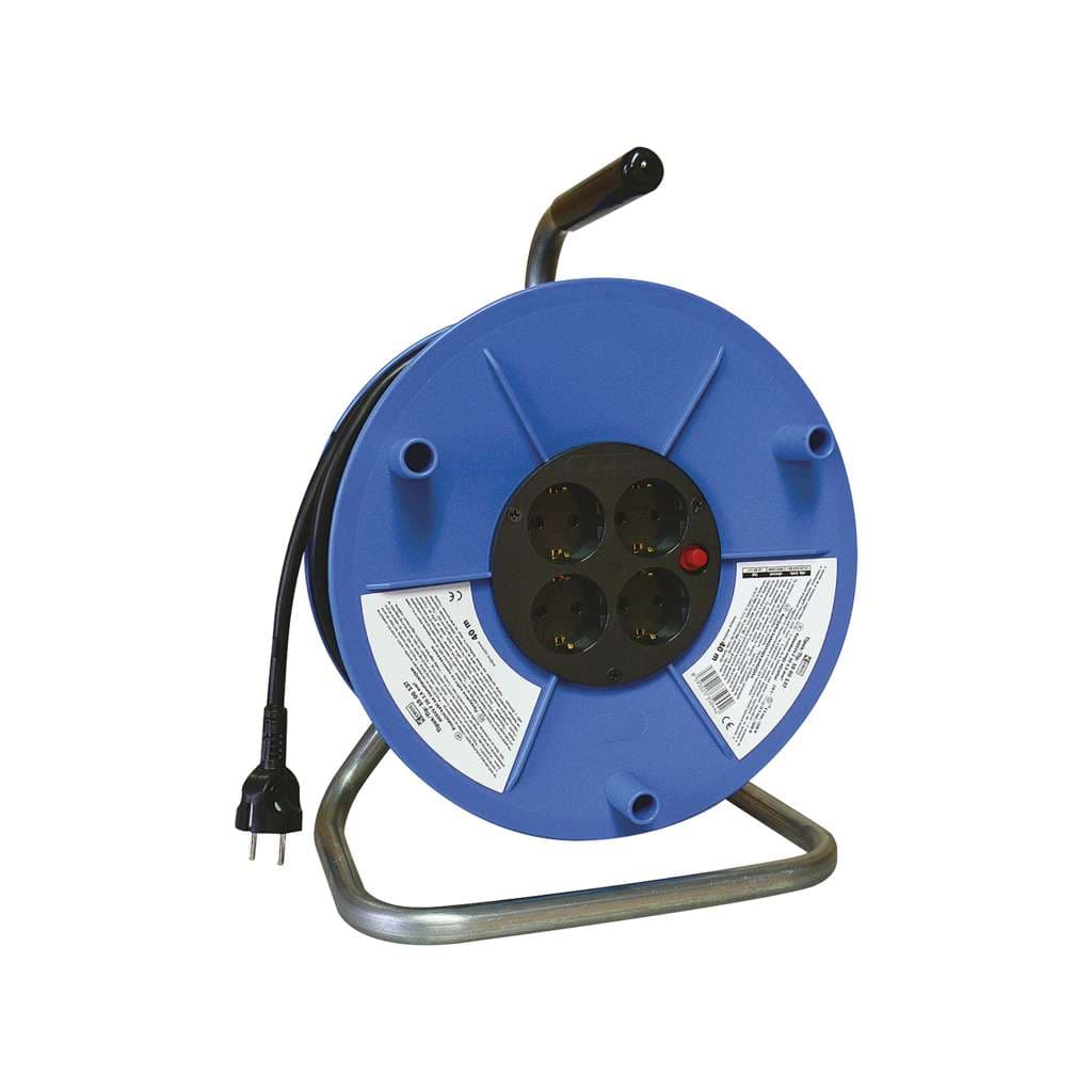 Кількість розеток - 4, євророзетка із заземленням (Тип F), Довжина кабелю - 40 м, заземлюючий контакт, на кабельній котушці, Захист - IP20, Сумарна потужність підключеного навантаження - < 3600 Вт, Колір - синій