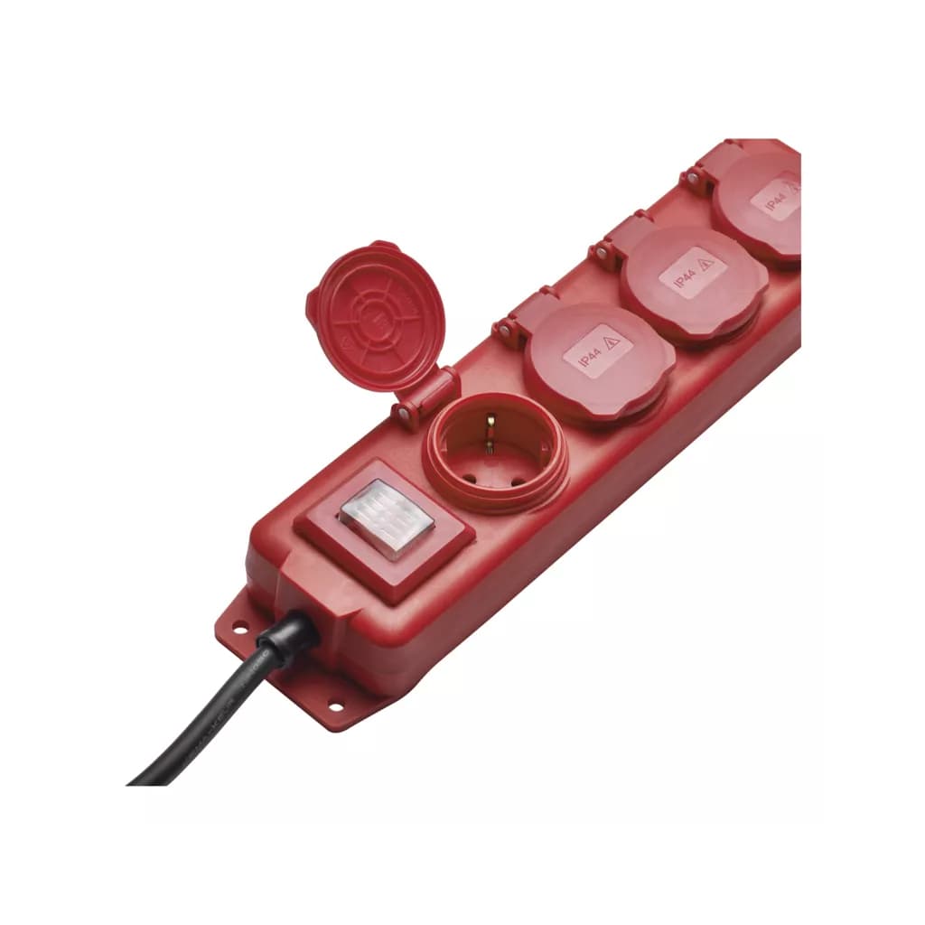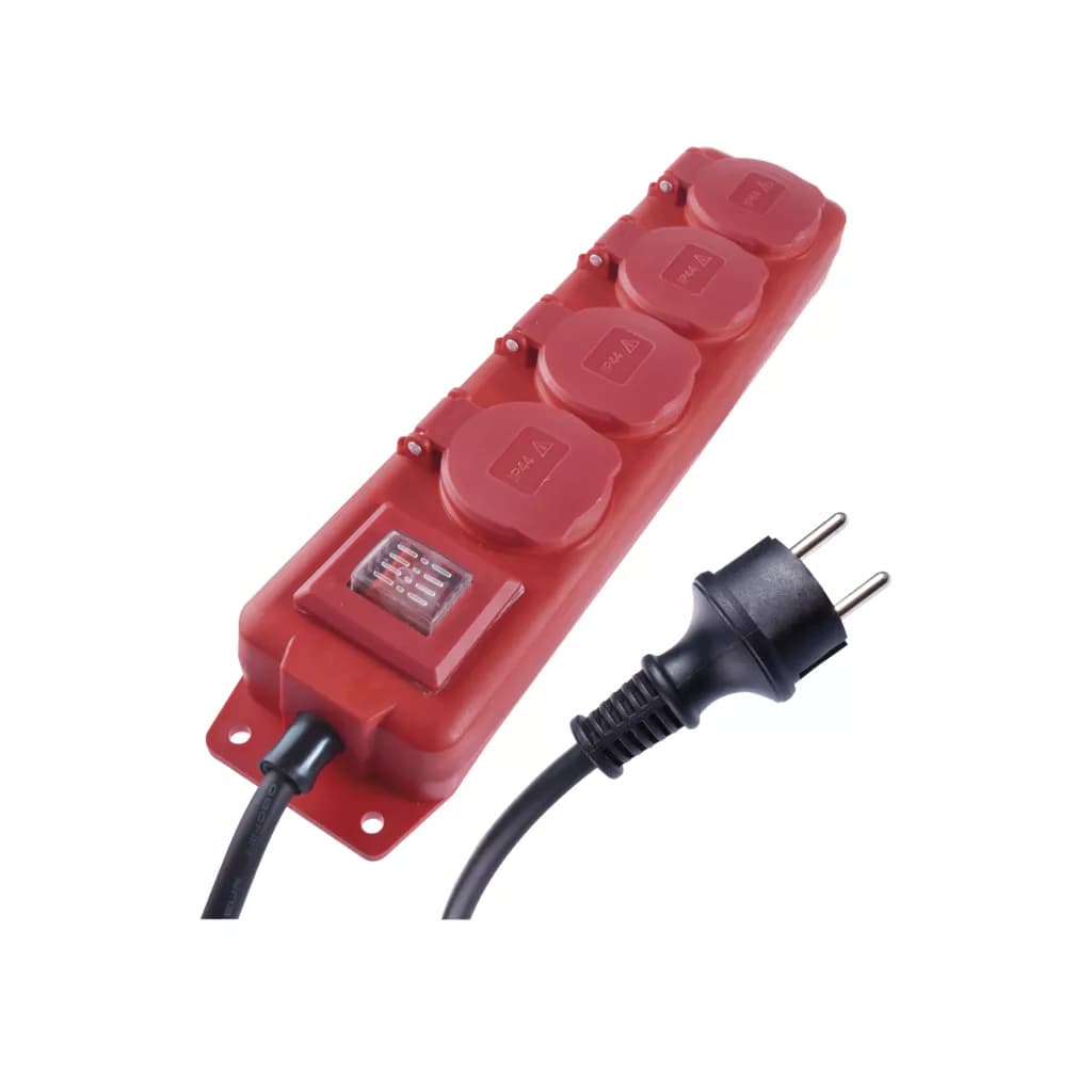 Кількість розеток - 4, євророзетка із заземленням (Тип F), Довжина кабелю - 5 м, заземлюючий контакт, Захист - IP44, Сумарна потужність підключеного навантаження - < 3680 Вт, Колір - темно-червоний