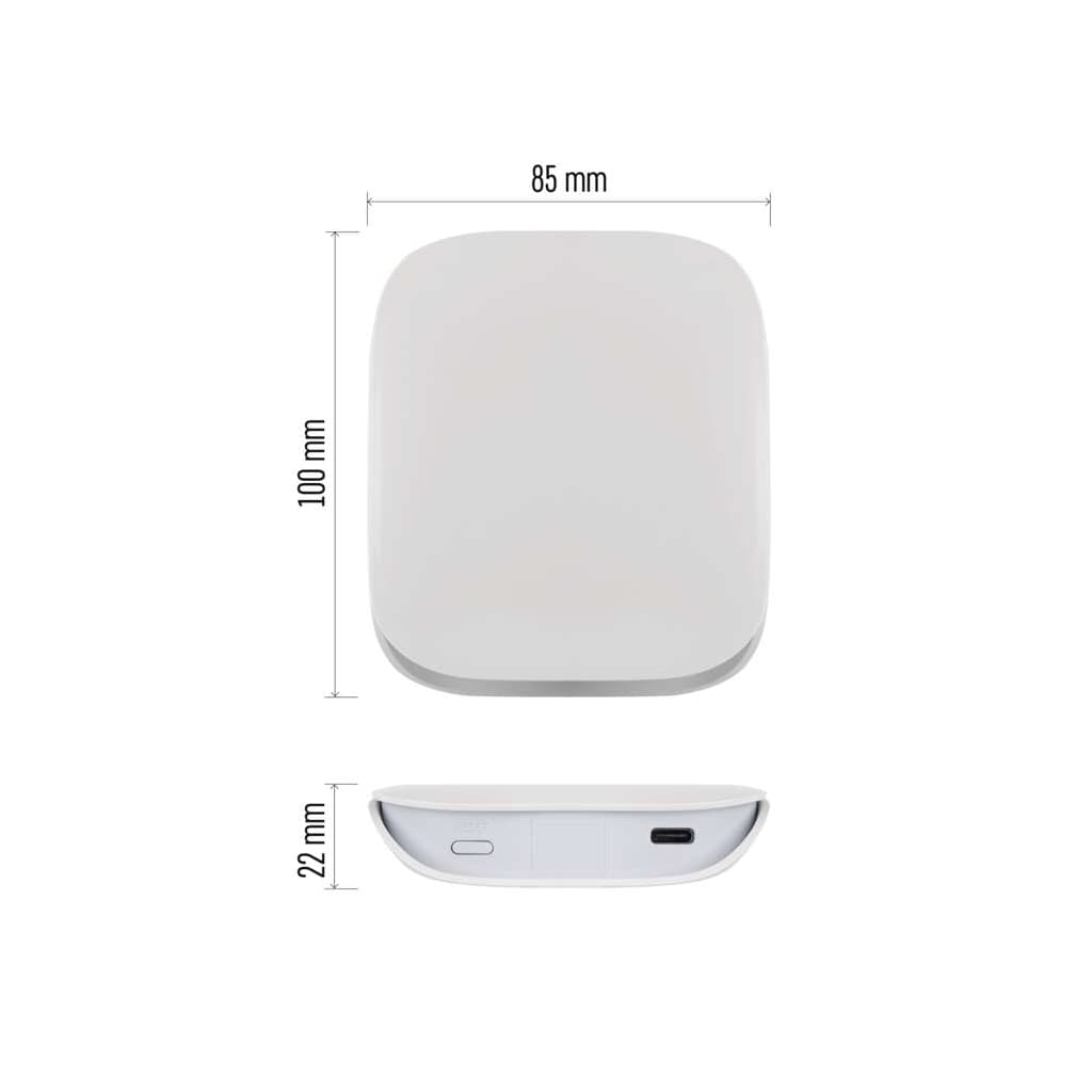 Бездротовий протокол - Wi-Fi, Bluetooth, ZigBee 3.0, Робоча частота - 2.4 ГГц, Android, IOS, Android, iOS, EMOS GoSmart, LIDL, Smart Life, Tuya Smart, пластик, 5 В, 100 х 85 х 20 мм, 132 г, білий