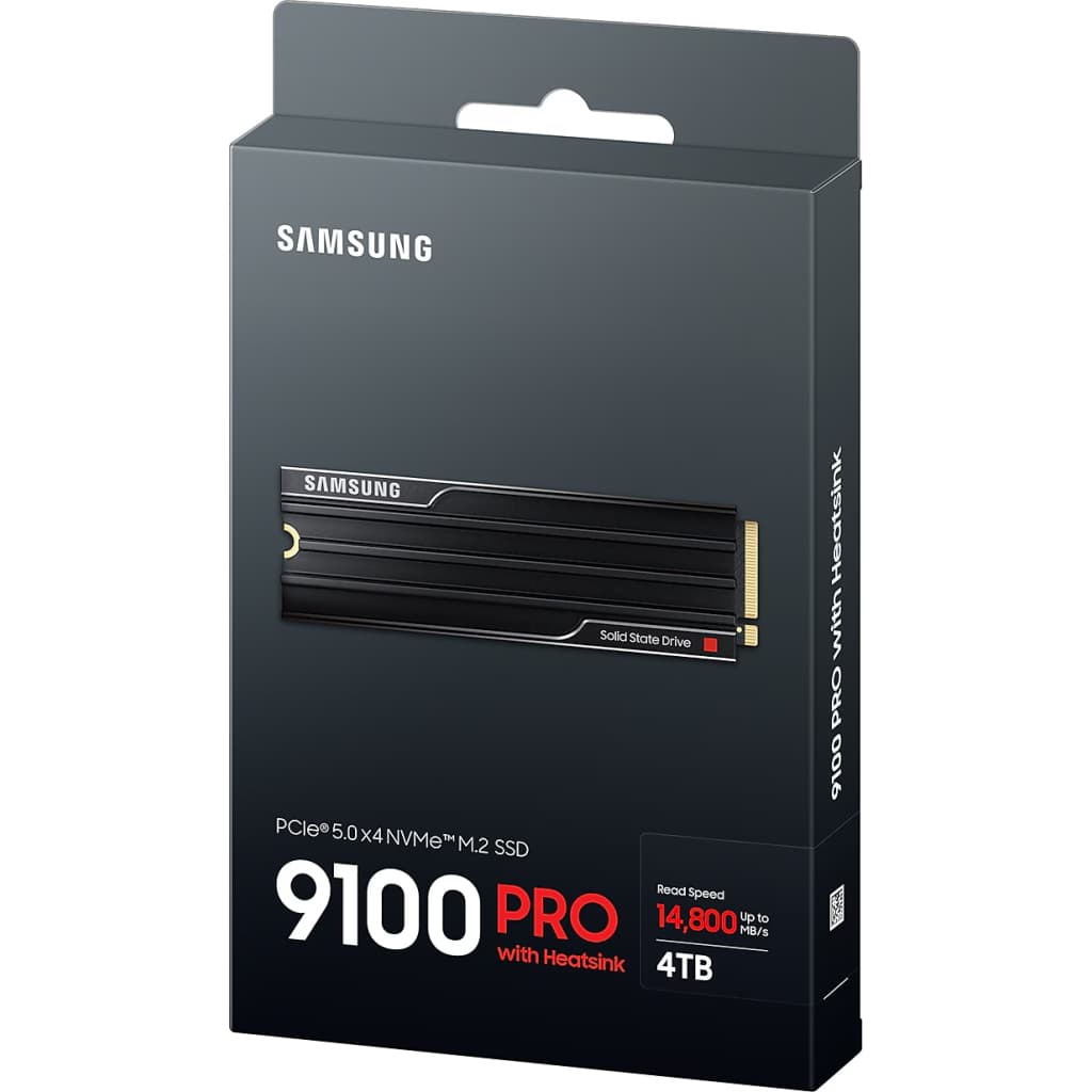 Серія - 9100 PRO, 4 TB, V-NAND TLC, M.2, PCI Express 5.0 x4, Швидкість читання - 14800 Mb/s, Швидкість запису - 13400 Mb/s, 80.15 x 25 x 8.88 мм, 30 г, чорний