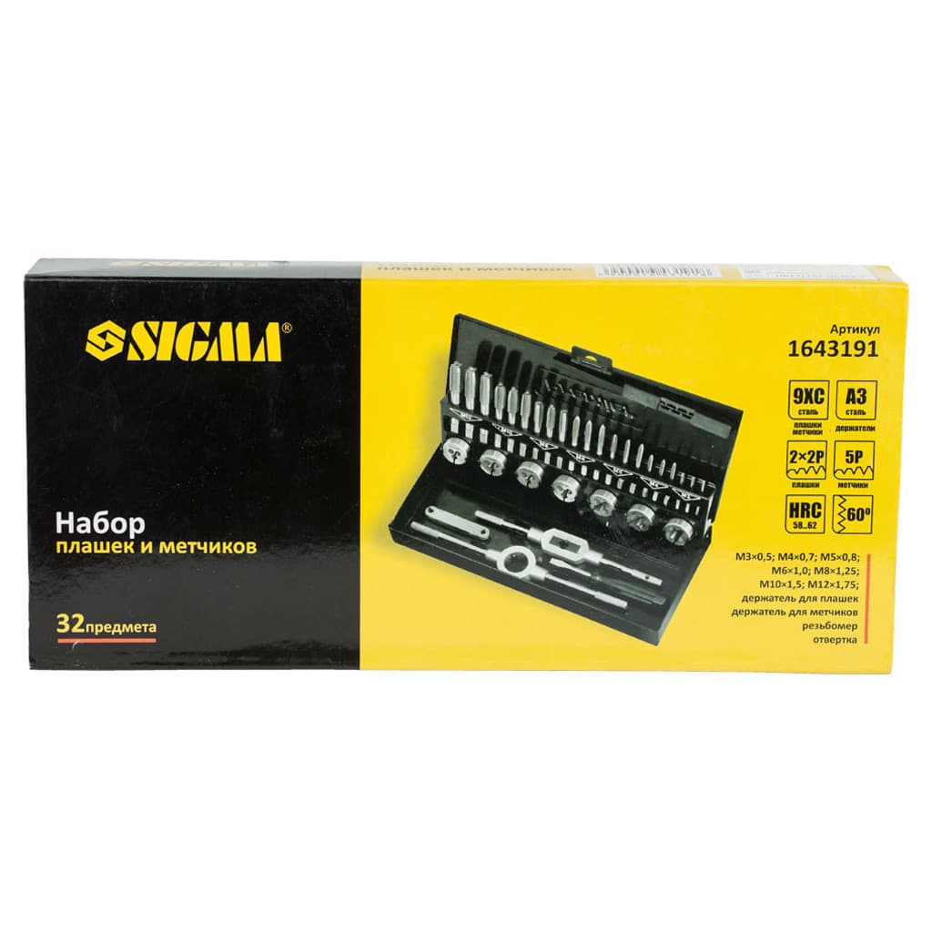 Набір мітчиків і плашок Sigma 32 предмети, металевий кейс (1643191)