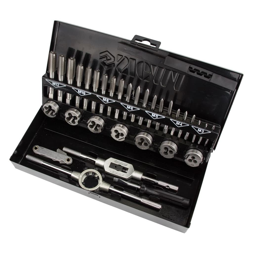 Кількість предметів - 32 шт, Вид різьби - метрична різьба, Різьблення - М3 х 0.5 мм, М4 х 0.7 мм, М5 х 0.8 мм, М6 х 1.0 мм, М8 х 1.25 мм, М10 х 1.5 мм, М12 х 1.75 мм