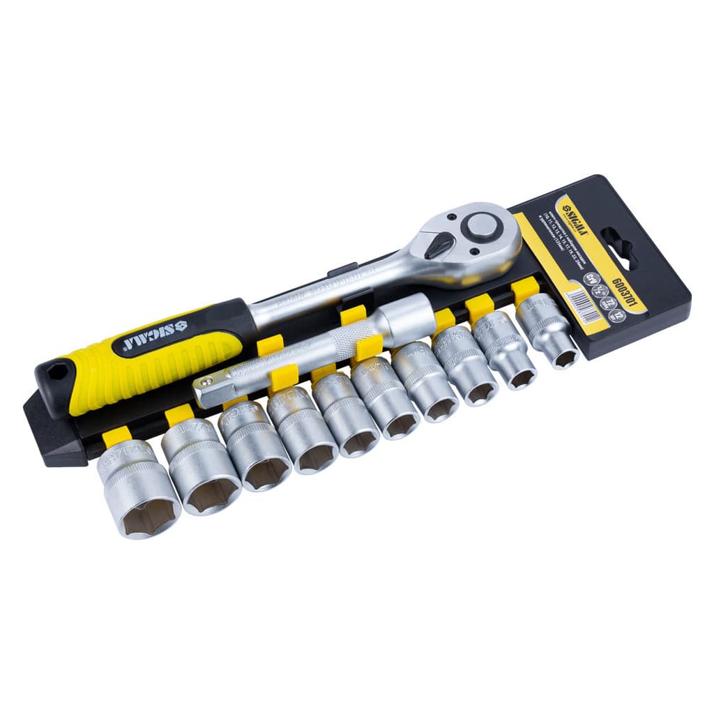 стандартна (коротка), з тріскачкою, з подовжувачем, Кількість предметів - 12 шт, метрична, 1/2", шестигранник, Розмір торцевих головок, мм - 10, 11, 12, 13, 14, 15, 17, 19, 22, 24