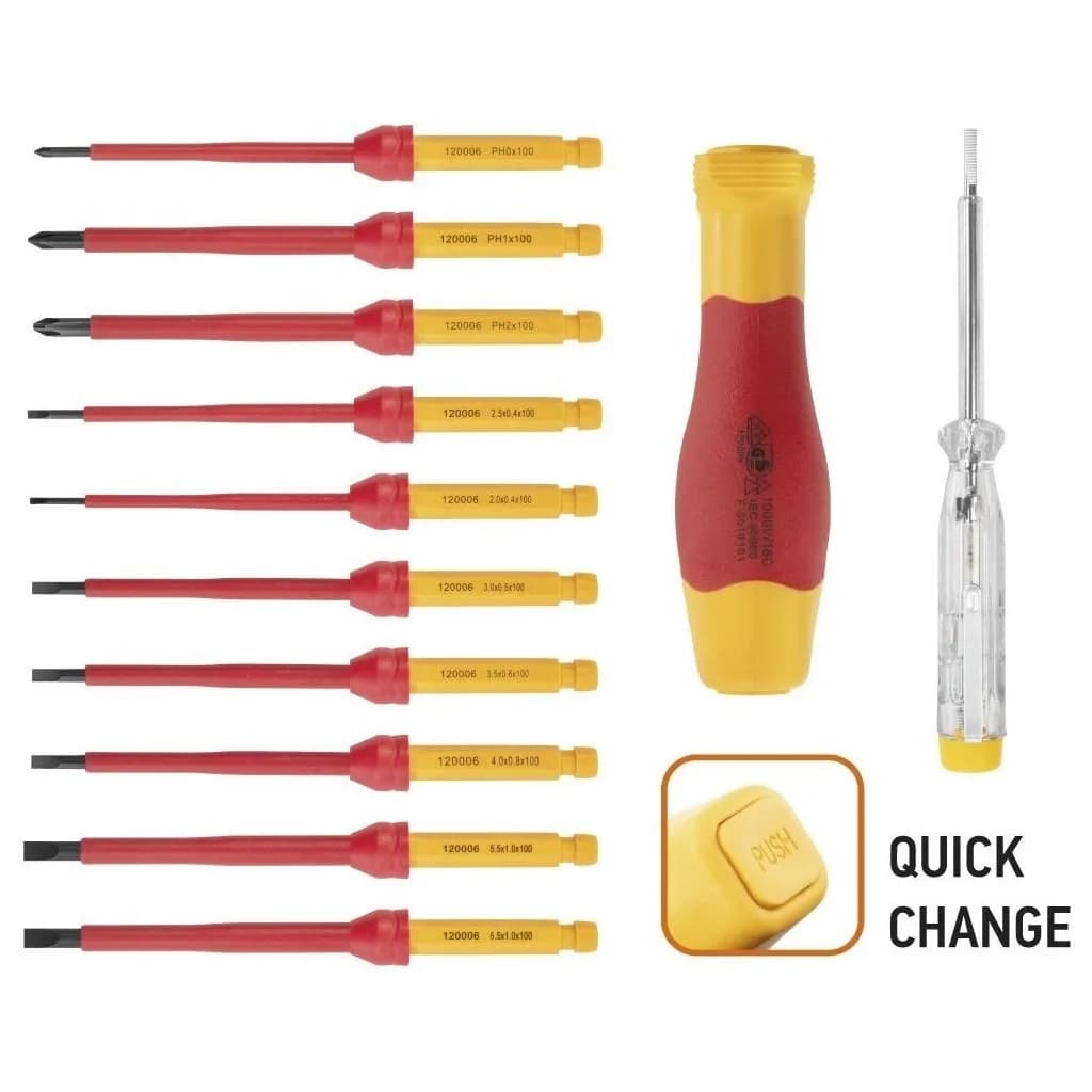 Набір викруток Neo Tools діелектрична бітотримач 1/4", 10 змінних вставок для робіт п (01-308)