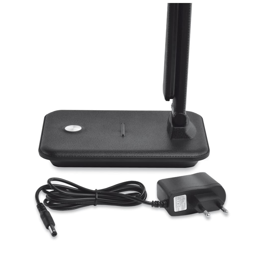 Стиль - класичні, Вид лампи - офісні, Тип лампи - LED-стрічка, Кріплення - підставка, незамінна, Вимикач - сенсорний, ні, так, Особливості - підставка для гаджета, Матеріал - пластик, Колір - чорний