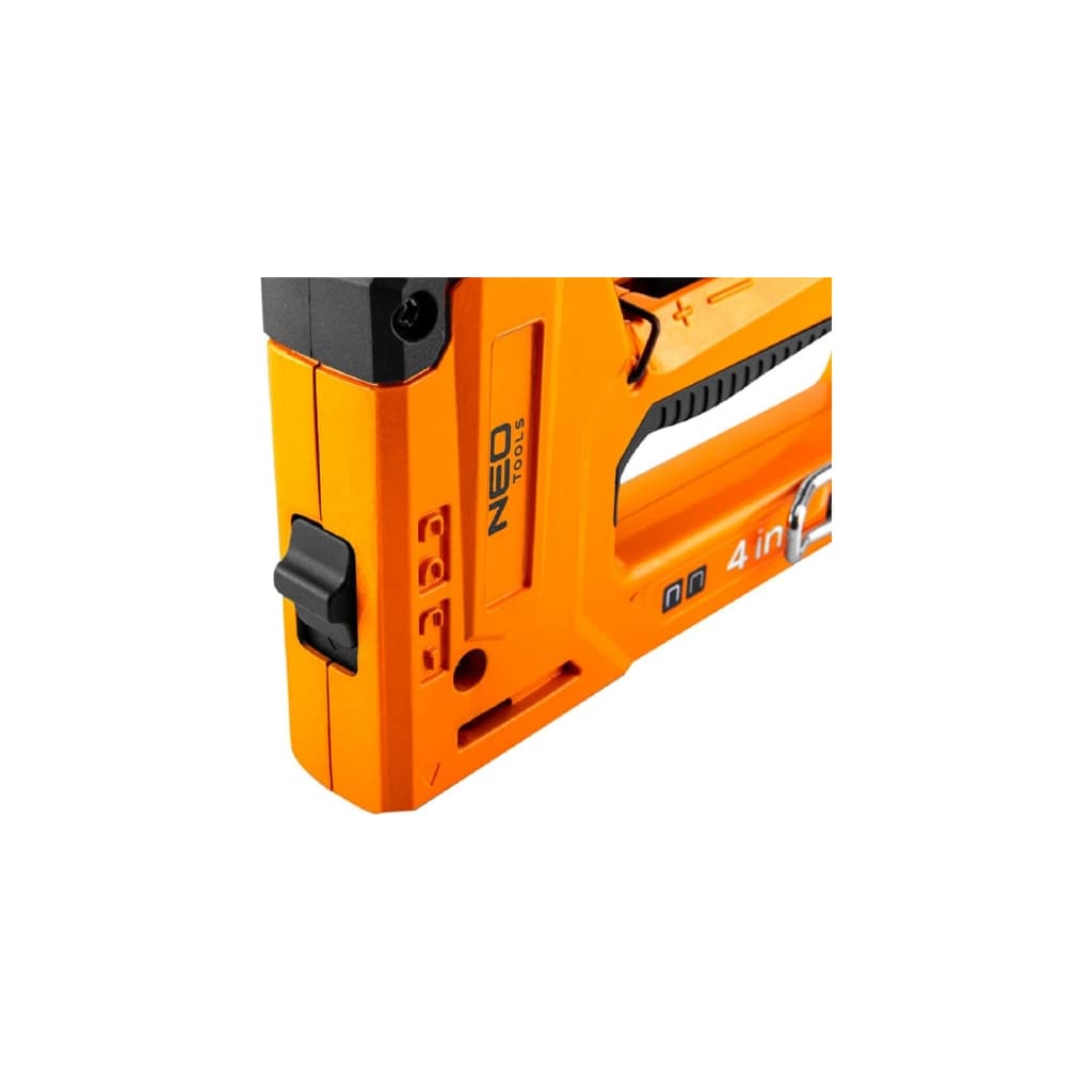 Степлер будівельний Neo Tools алюмінієвий, 4 в 1, 6-14 мм, тип скоб J, G, L, E, регулюванн (16-030)