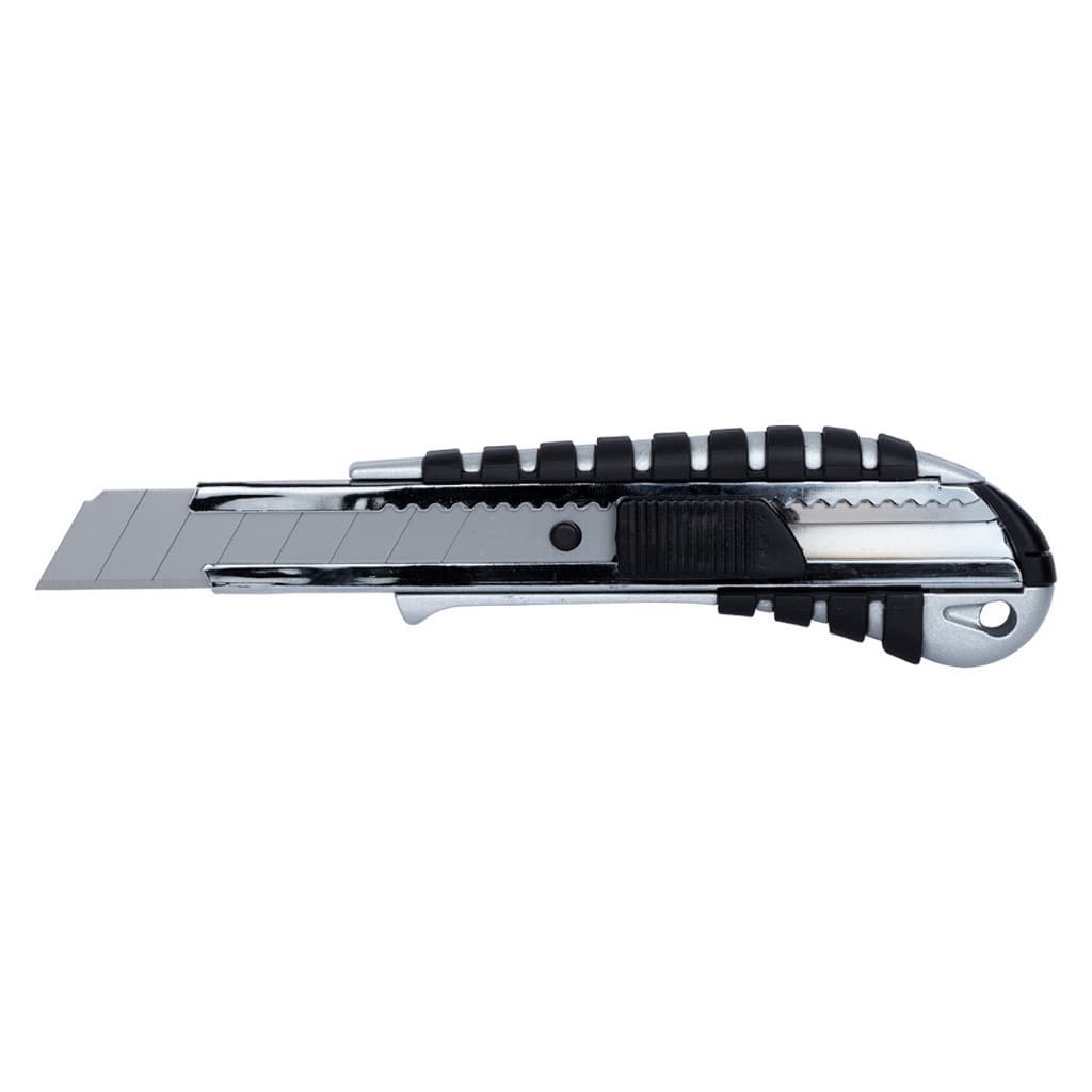 Призначення - для лінолеуму / коврового покриття, універсальний, для плівки, для розрізання пакувальних матеріалів, Комплектація - один ніж, матеріал корпуса - метал, гума, тип леза - сегментоване, ширина леза, мм - 18
