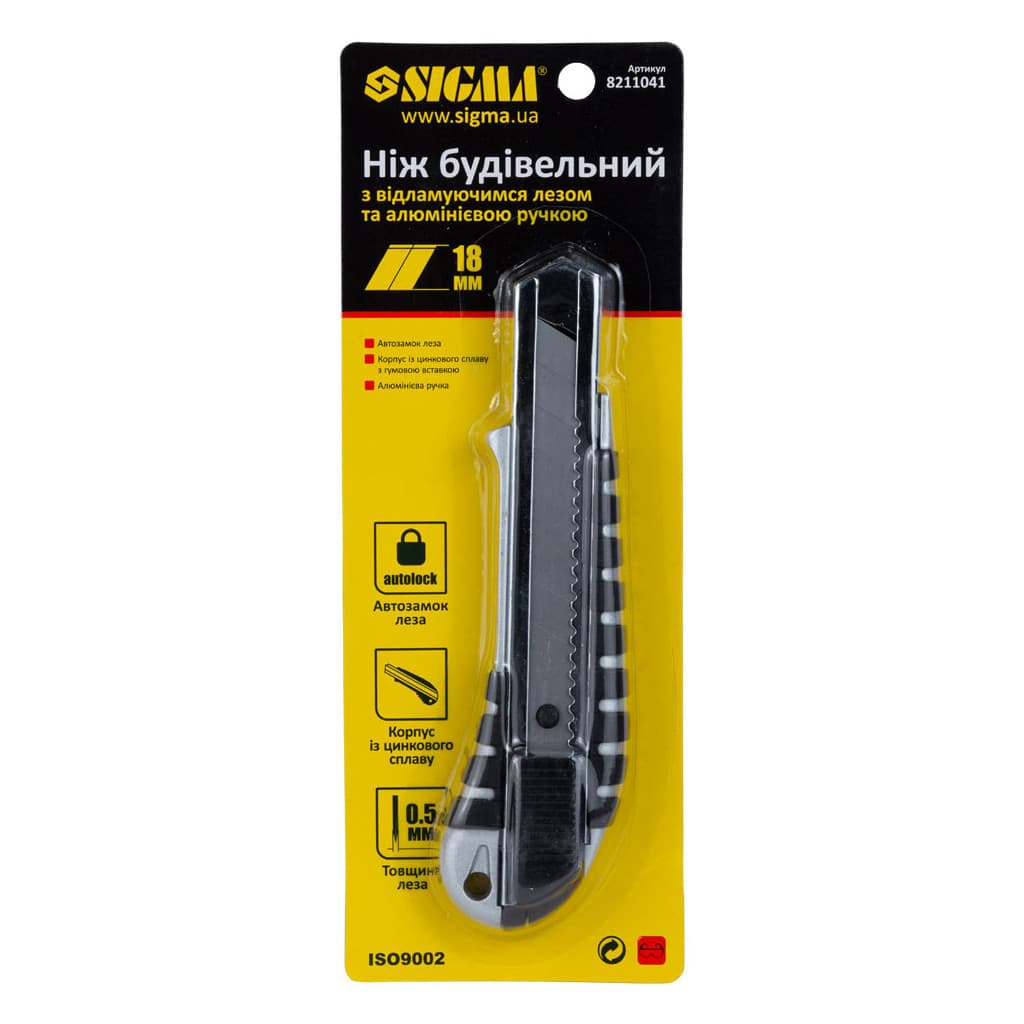 Ніж монтажний Sigma корпус метал/гума, лезо 18мм, автоматичний замок (8211041)