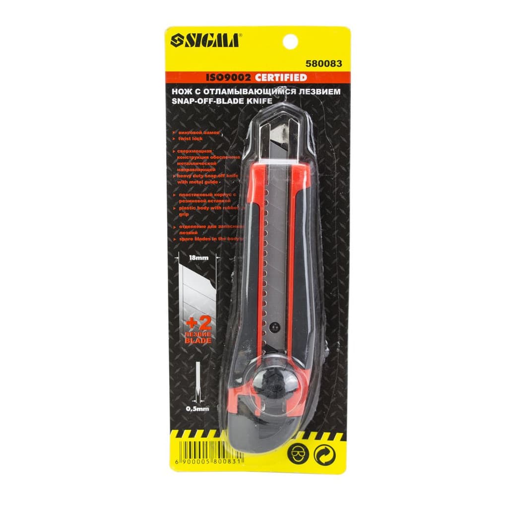 Ніж монтажний Sigma пластик/гума корпус, лезо 18мм, гвинтовий замок (8211101)