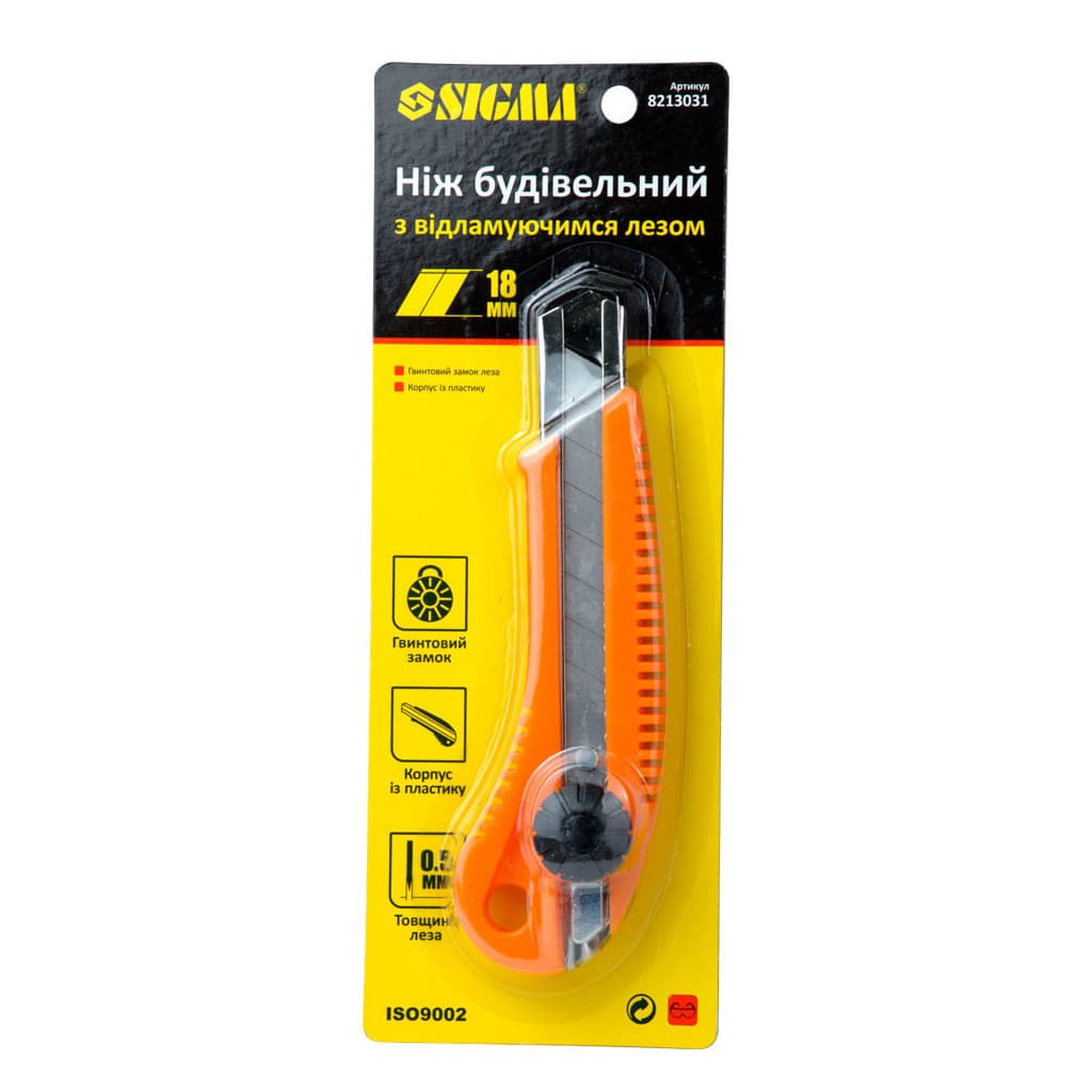 Ніж монтажний Sigma пластиковий корпус, лезо 18мм, гвинтовий замок (8213031)