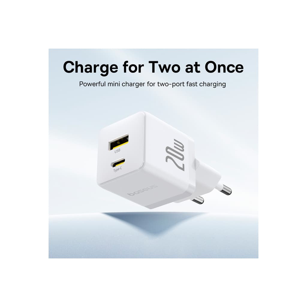 Зарядний пристрій Baseus Palm Fast Charger C+U 20W moon white (P10111608213-00)