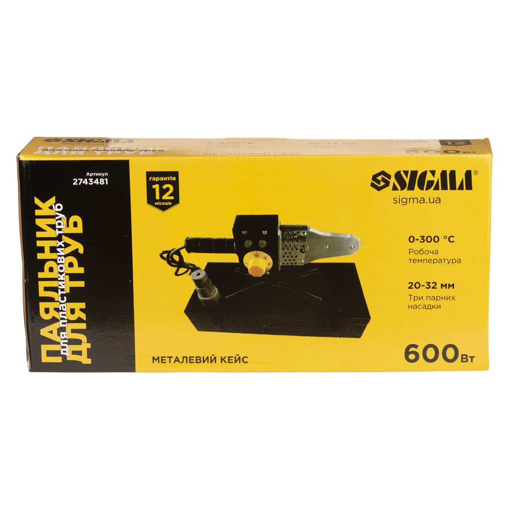 Паяльник для пластикових труб Sigma 600Вт 20-32мм у металевому кейсі (2743481)