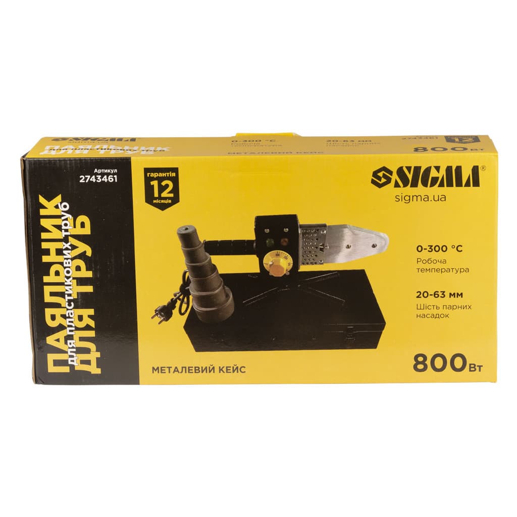 Паяльник для пластикових труб Sigma 800Вт 20-63мм у металевому кейсі (2743461)