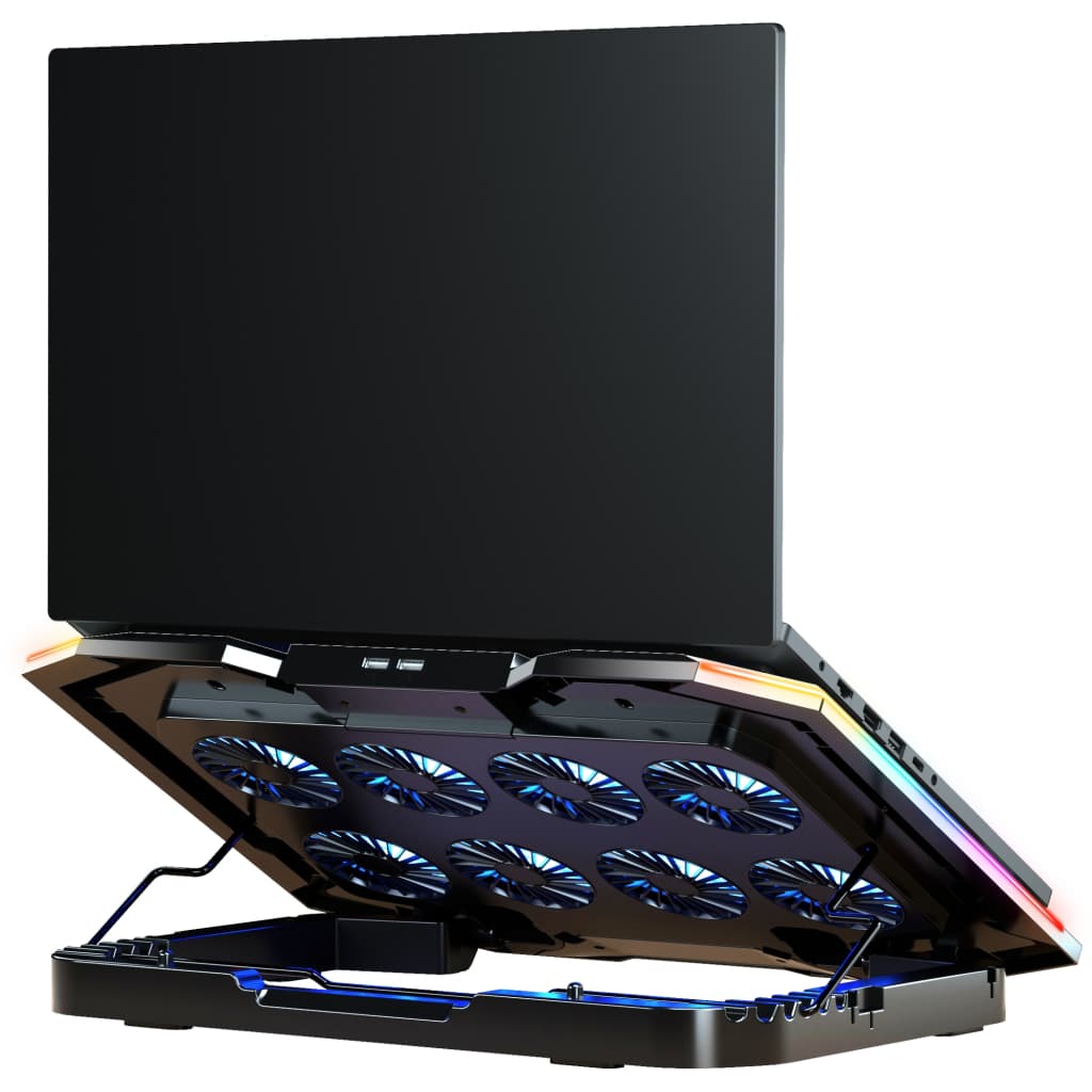 Розмір - 412 × 295 × 40 мм, Сумісність - для ноутбуків з діагоналлю екрану до 21", Метод охолоджування - 8 вентиляторів 70 мм, метал + пластик, 1.1 кг, Колір - чорний