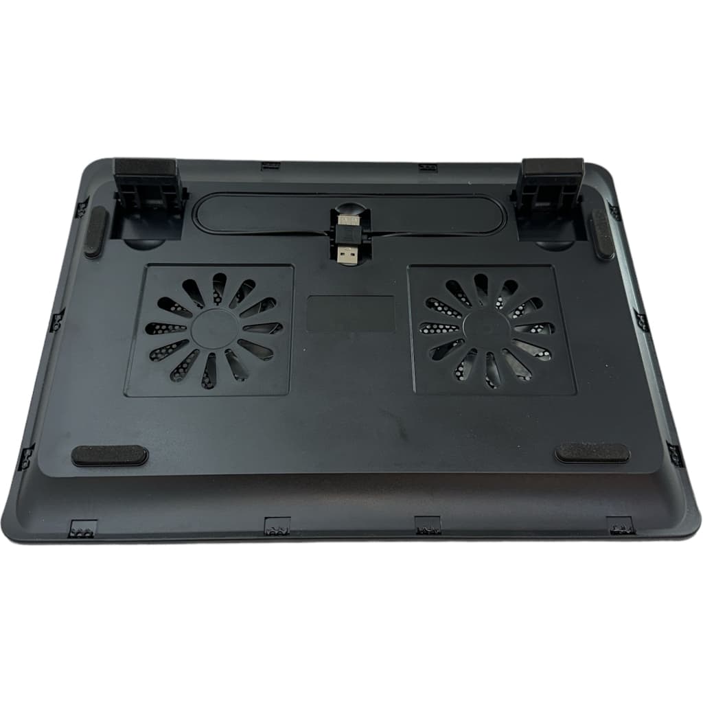 Сумісність - для ноутбуків з діагоналлю екрану до 15.6", Метод охолоджування - 2 вентилятора по 80 мм, 11 дБ, 750-1500 RPM, метал + пластик, Колір - чорний