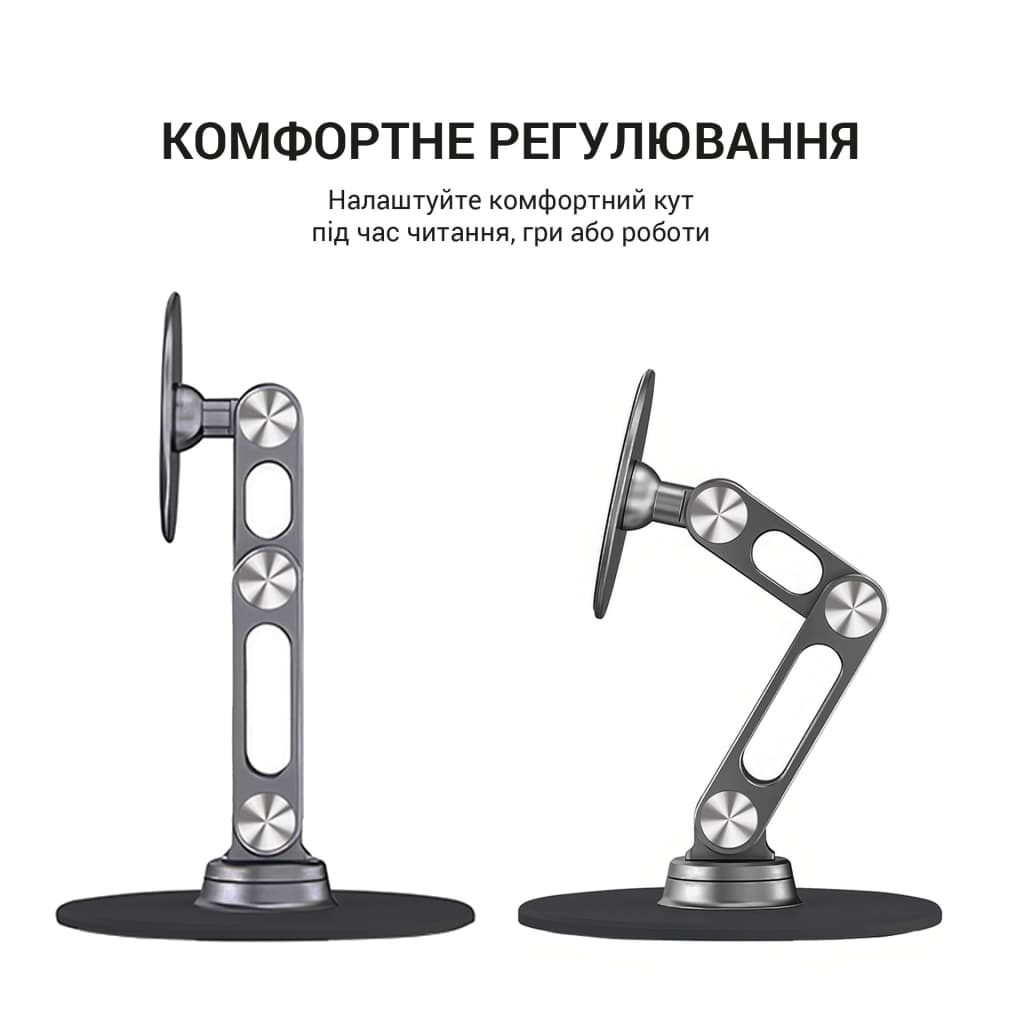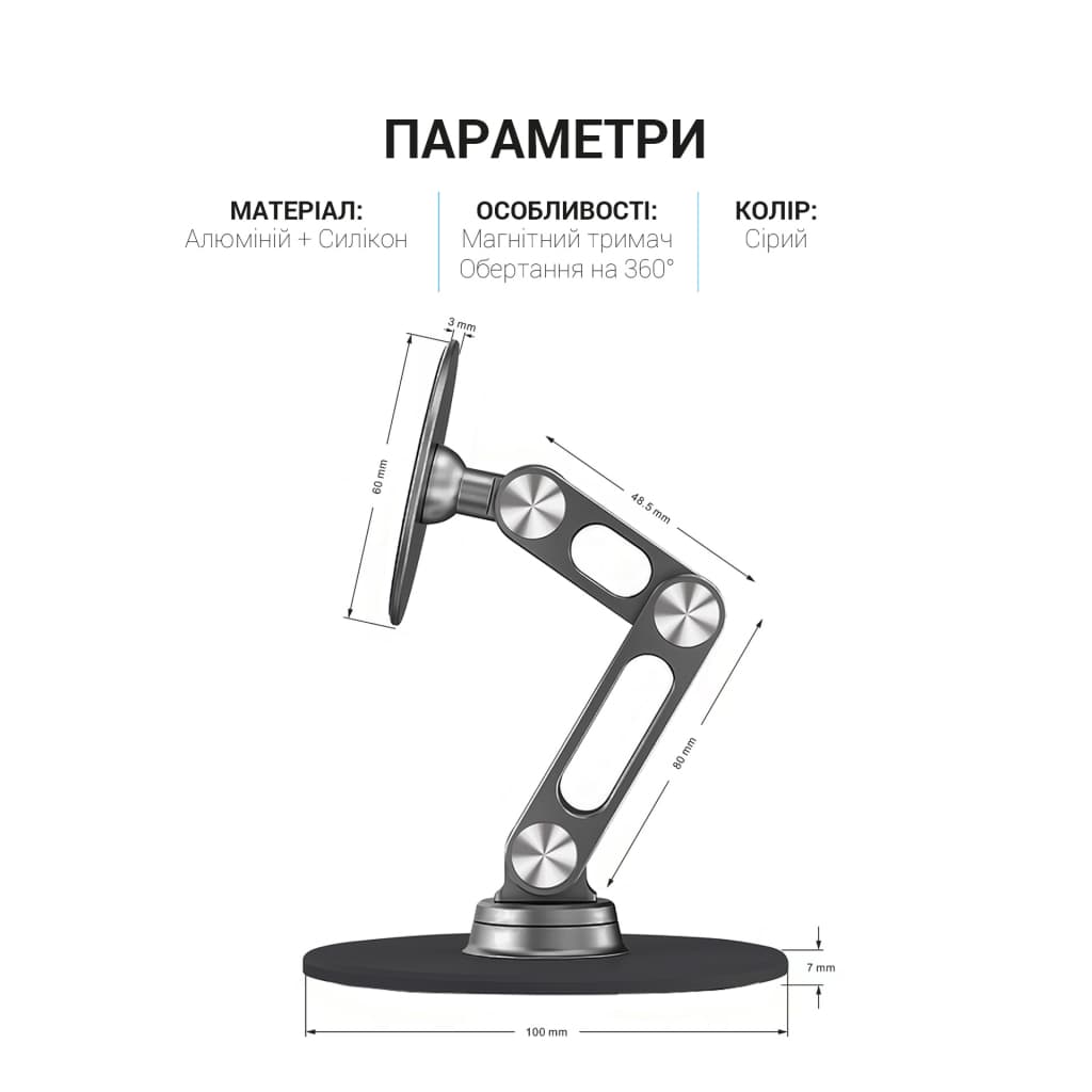 Колір - сірий, Сумісність - для сматрфонів, розмір - 177 х 100 х 60 мм, Особливості - шарнірне кріплення з обертанням на 90°