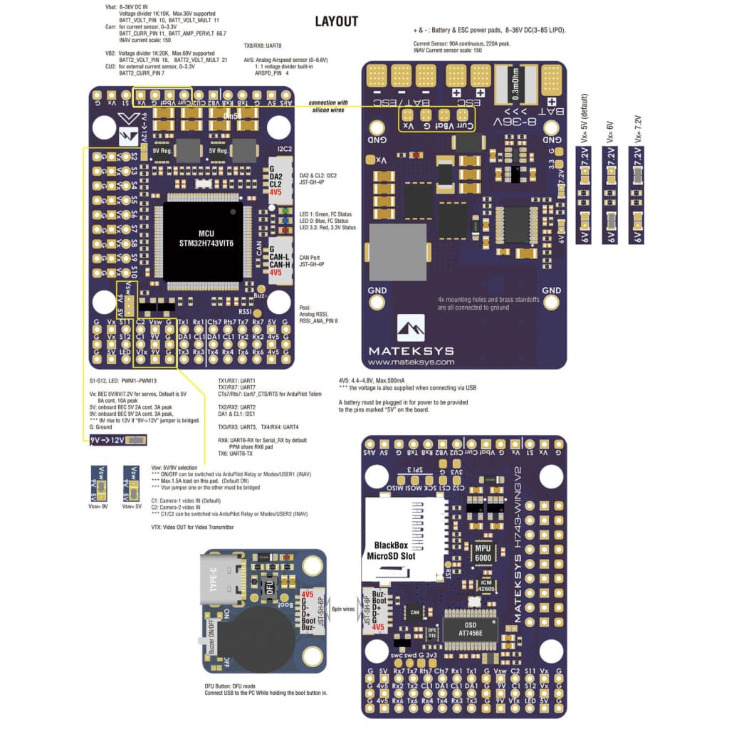 Політний контролер (FC) MATEK H743-WING V3 (H743-WING-V3/HP024.0084-V3)