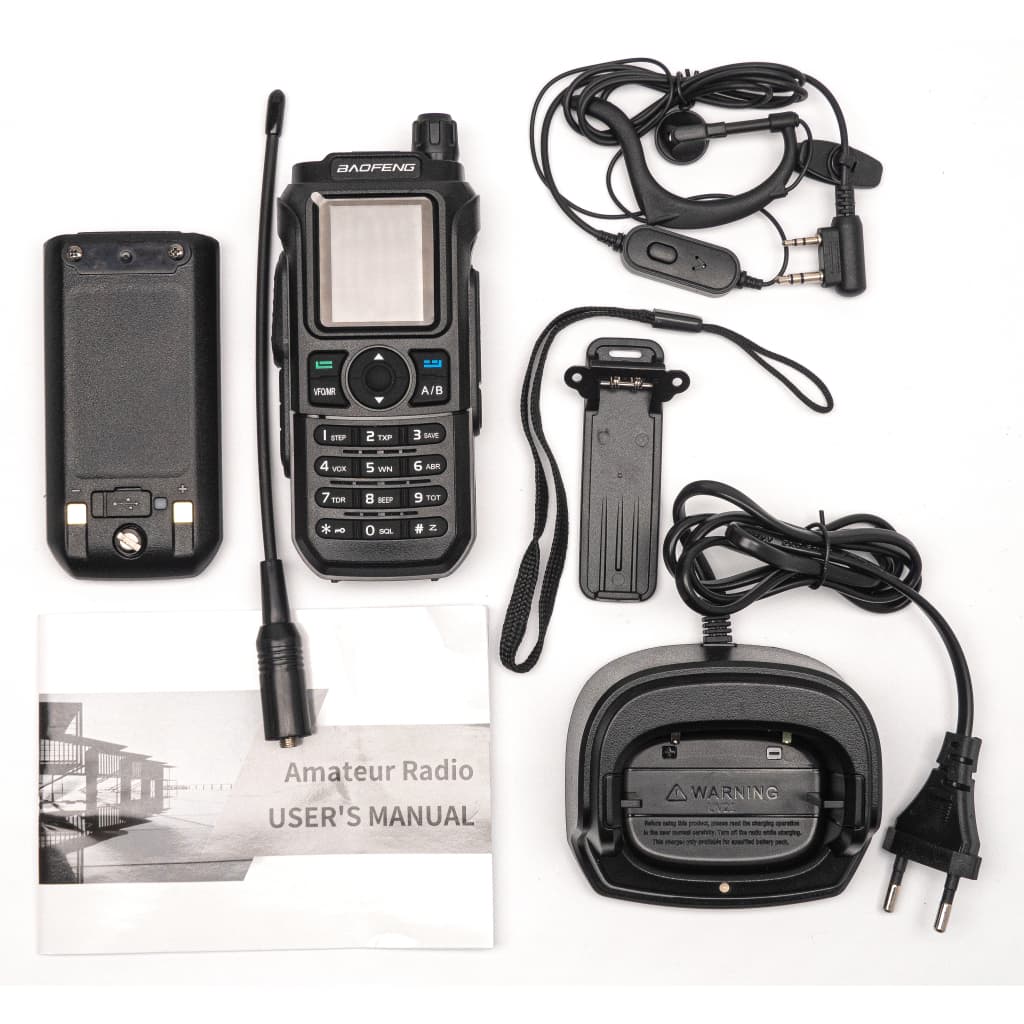 Тип - радіоаматорські, Тип зв'язку - аналогові, потужність приймача - 5 Вт, кількість каналів - 16 каналів, водонепроникні, Стандарт частот - UHF, VHF, Призначення - портативні, Оснащення - ліхтарик, гарнітура, дисплей, зарядний пристрій, Li-ion 1800 mAh, Діапазон частот - 3. 400-520 МГц, 136-174 МГц, 220-260 МГц, Кількість рацій - 1 шт, Розміри - 130 х 58 х 40 мм, Вага - 272 г, Колір - чорний