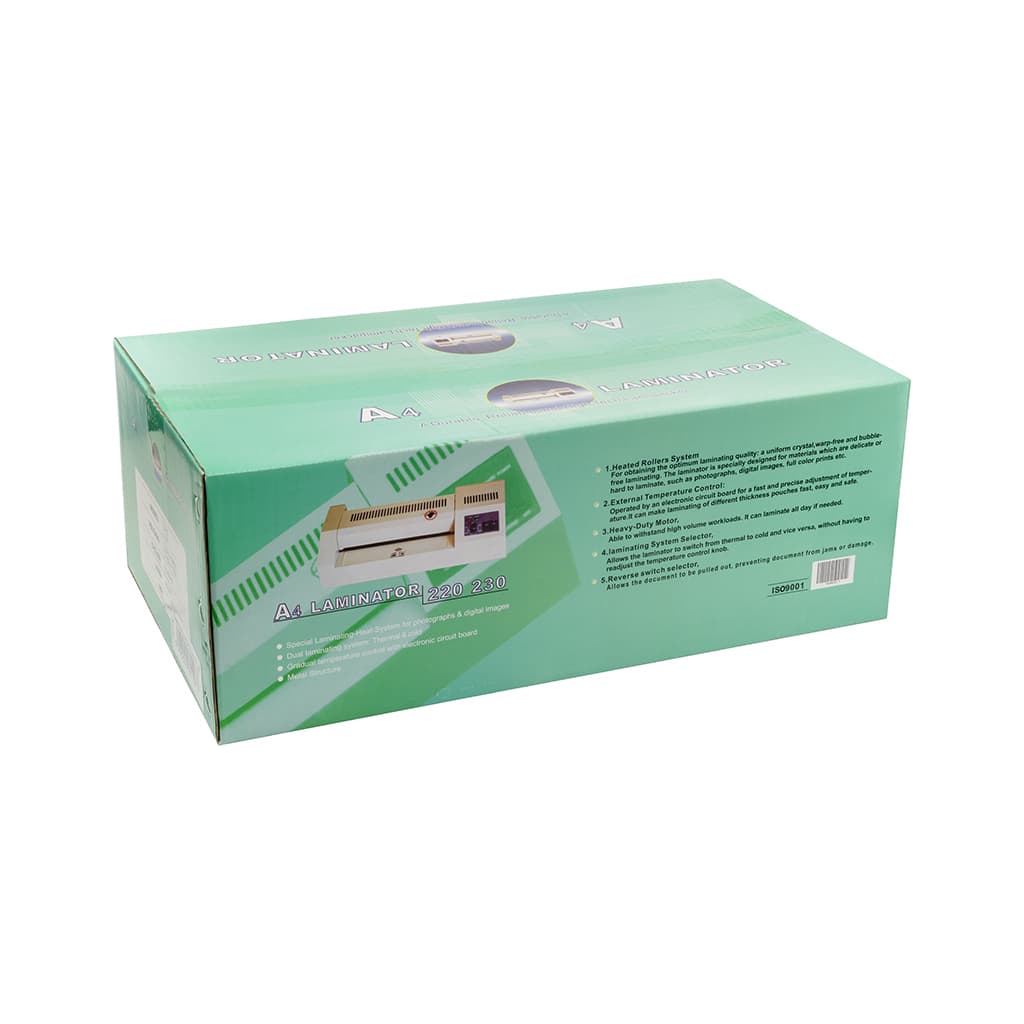 Тип - конвертний, Призначення - для дому, для офісу, Формат - A4, максимальна ширина ламінування - 320 мм, максимальна товщина ламінування - 2 мм, швидкість ламінування - 500 мм/хв, метод нагрівання - гарячі вали, 470 х 160 х 100 мм