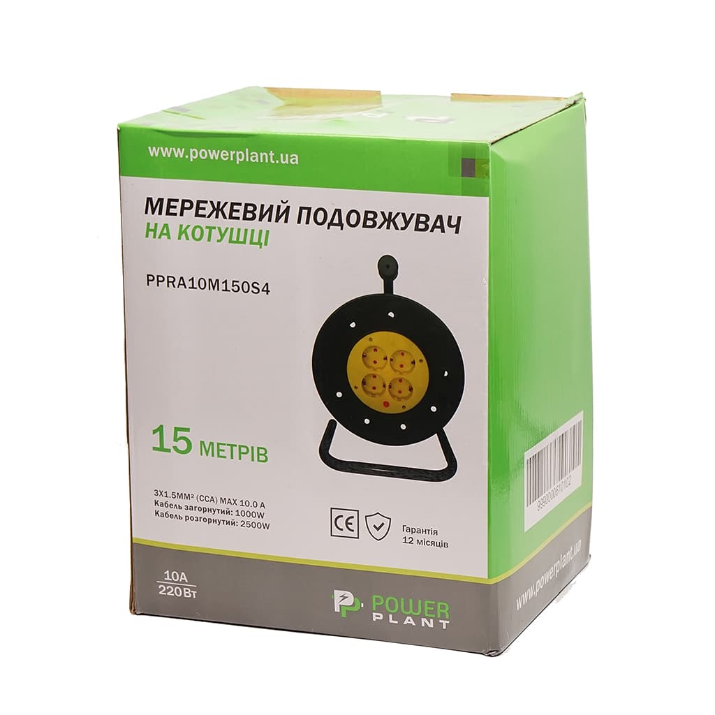 Мережевий подовжувач PowerPlant на катушке 15 м, 4 розетки (JY-2002/15) (PPRA10M150S4)