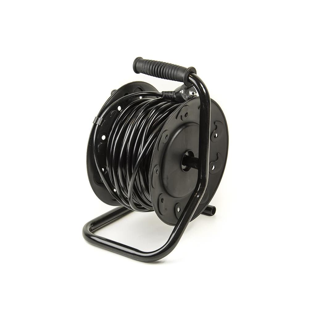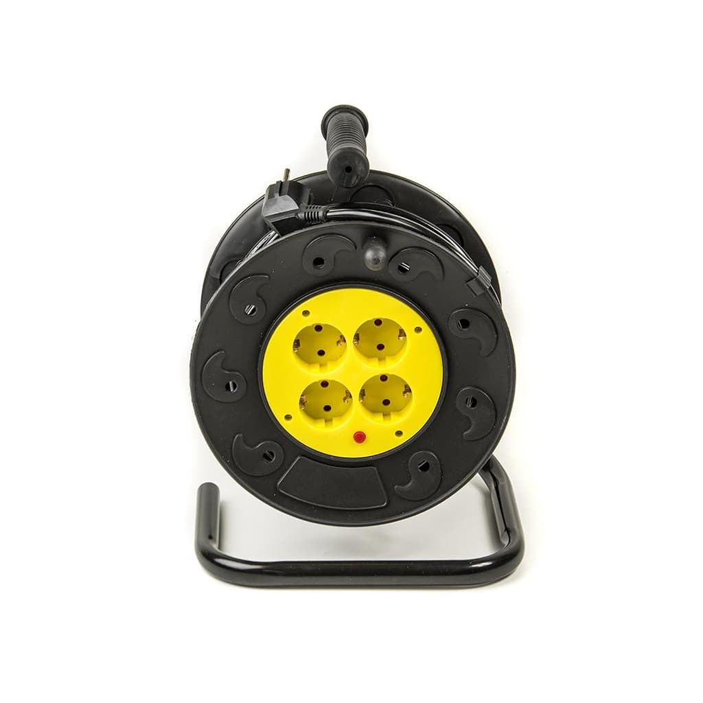Кількість розеток - 4, євророзетка із заземленням (Тип F), Довжина кабелю - 20 м, заземлюючий контакт, на кабельній котушці, Сумарна потужність підключеного навантаження - ≤ 2500 Вт, Колір - чорний
