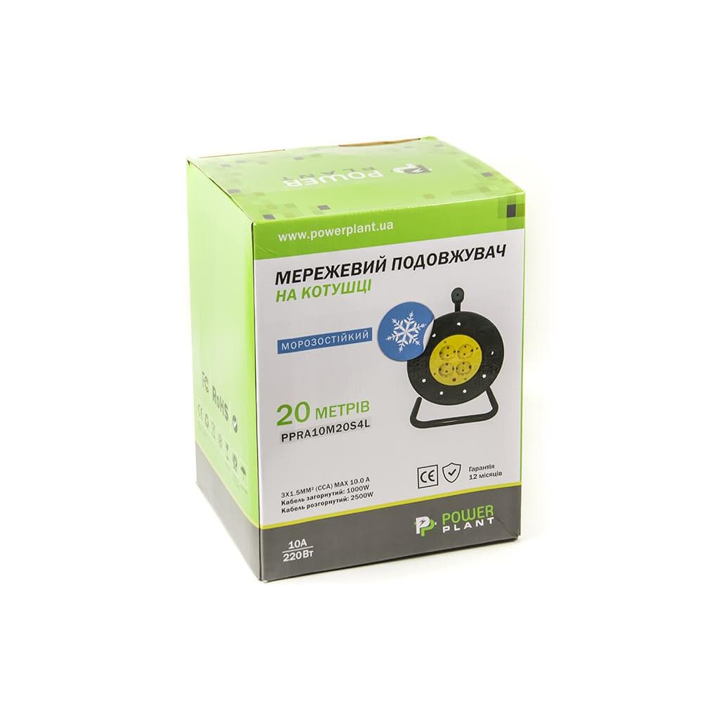 Мережевий подовжувач PowerPlant на катушке 20 м, 4 розетки, морозостойкий (JY-2002/20) (PPRA10M20S4L)