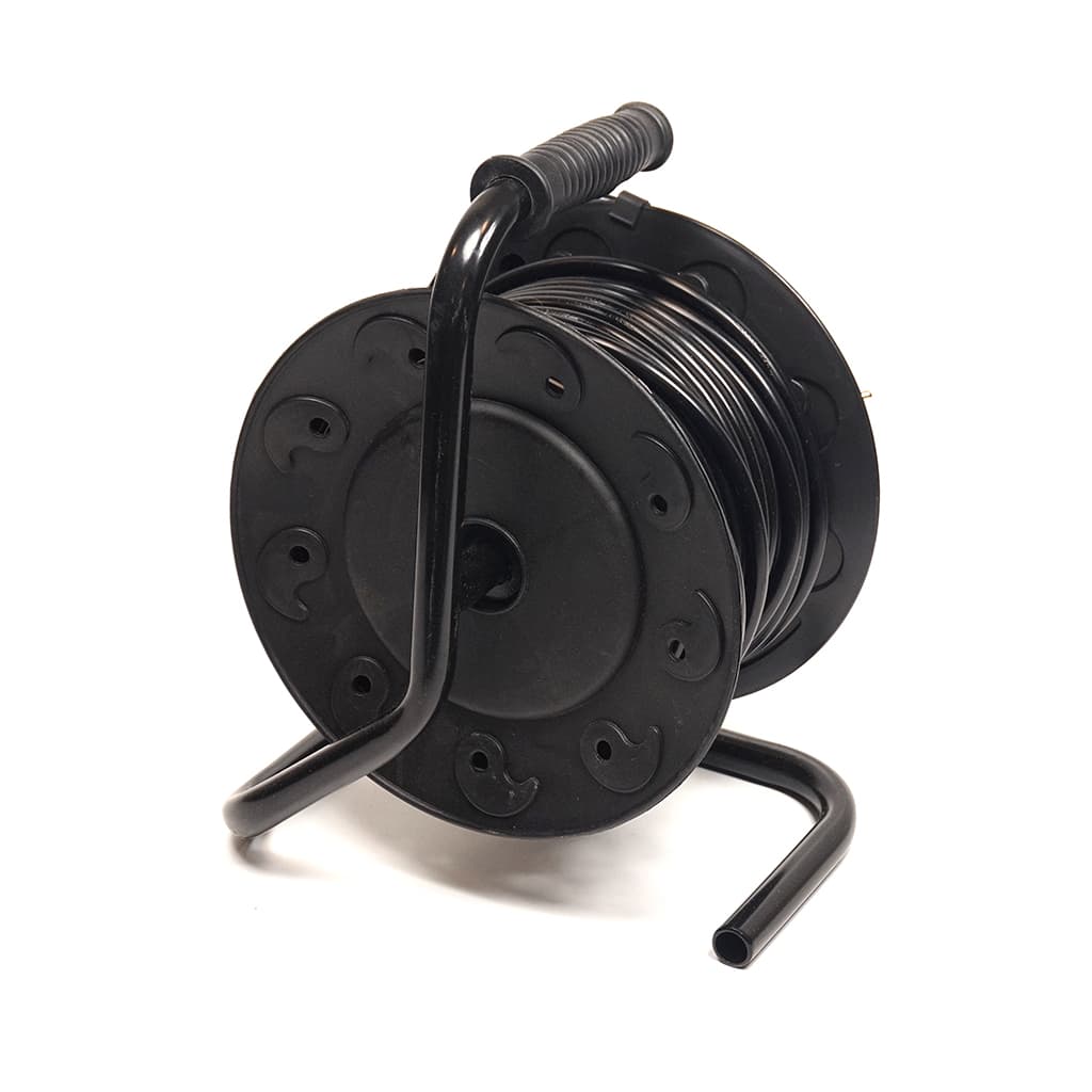 Кількість розеток - 4, євророзетка із заземленням (Тип F), Довжина кабелю - 25 м, заземлюючий контакт, на кабельній котушці, Колір - чорний