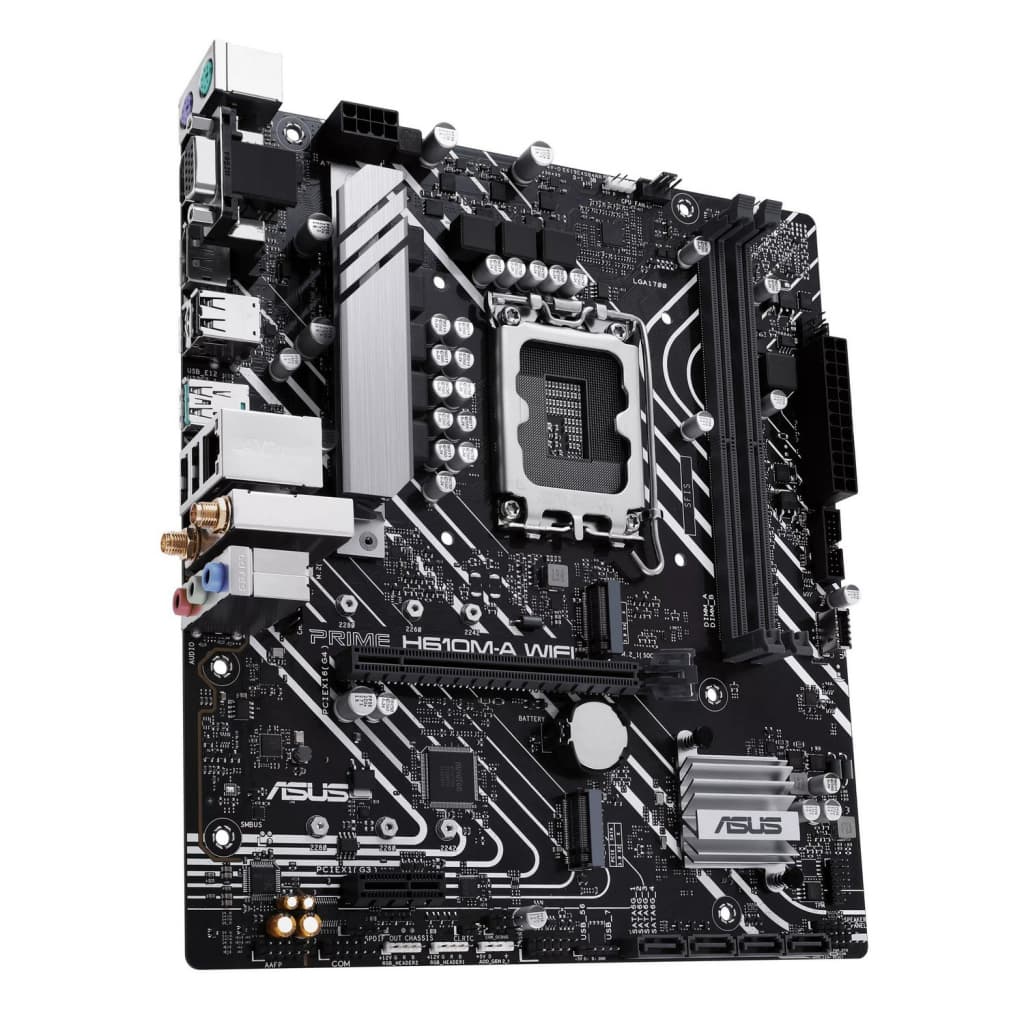сокет - 1700, чіпсет - Intel H610, DDR5, макс. об'єм оперативної пам'яті - 96 ГБ, макс. частота оперативної пам'яті - 5600 MHz, швидкість LAN - 1 Гбіт/с, DisplayPort, HDMI, внутрішні - 2 x M.2 2280, 4 x Sata 6.0 Gb/s, Wi-Fi (802.11 a/b/g/n/ac), Micro-ATX