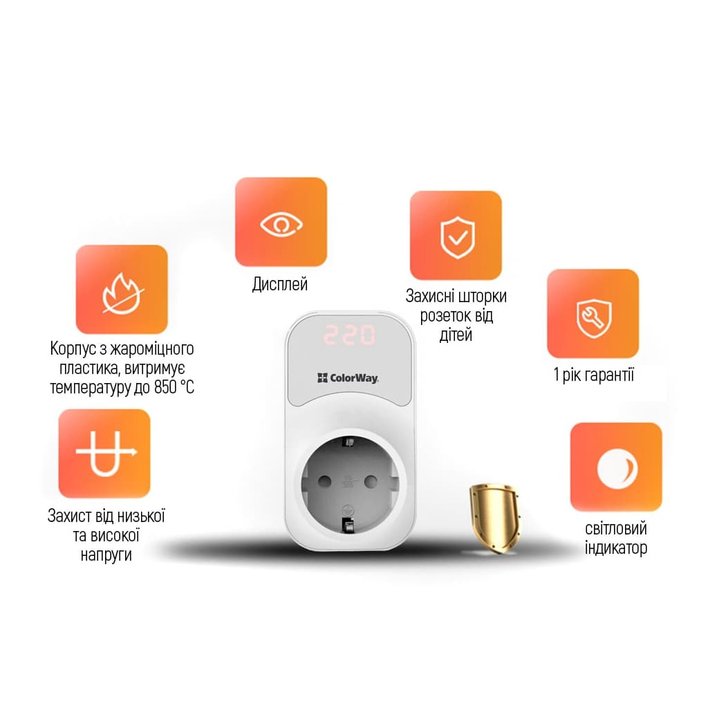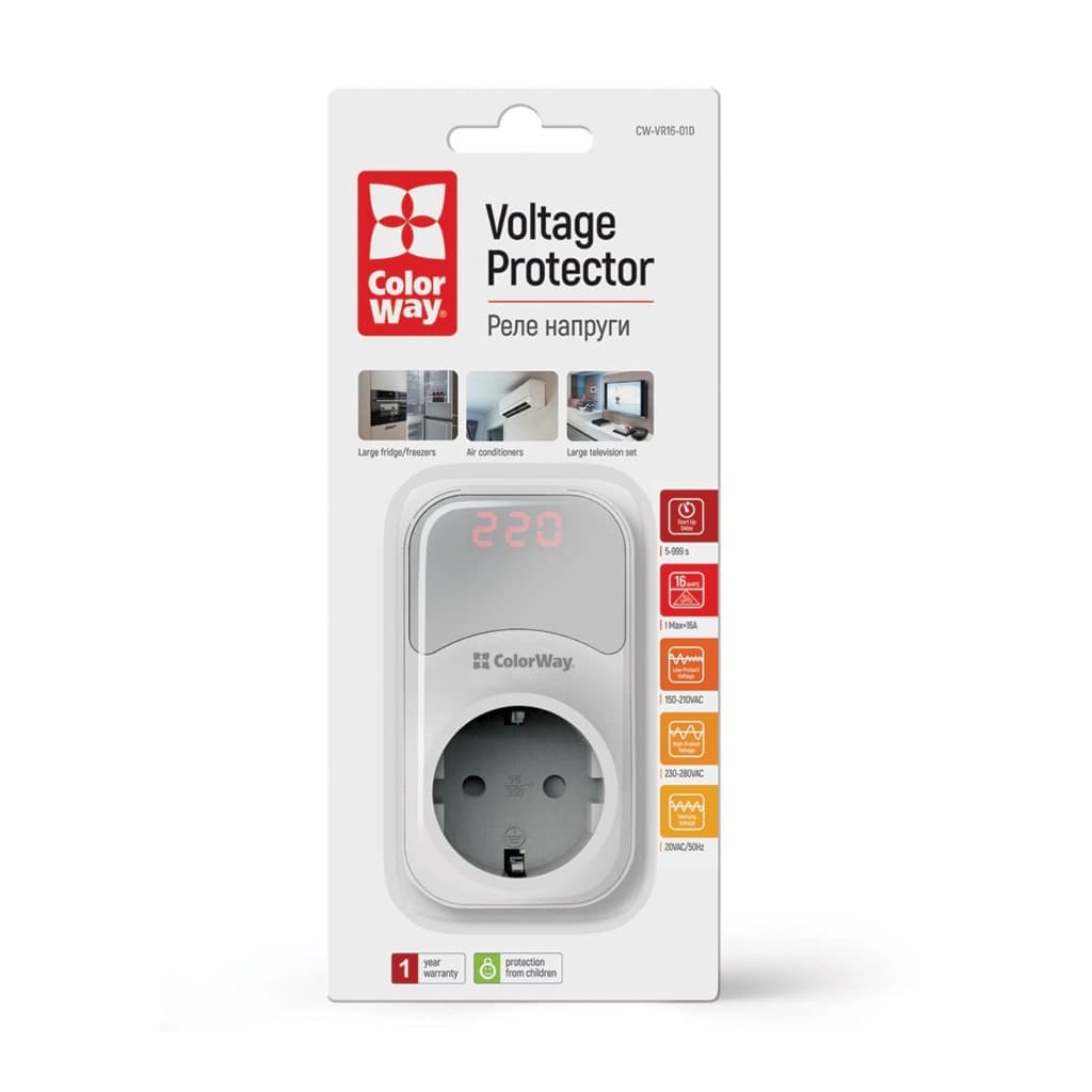 Реле напруги ColorWay DS1, white (CW-VR16-01D)