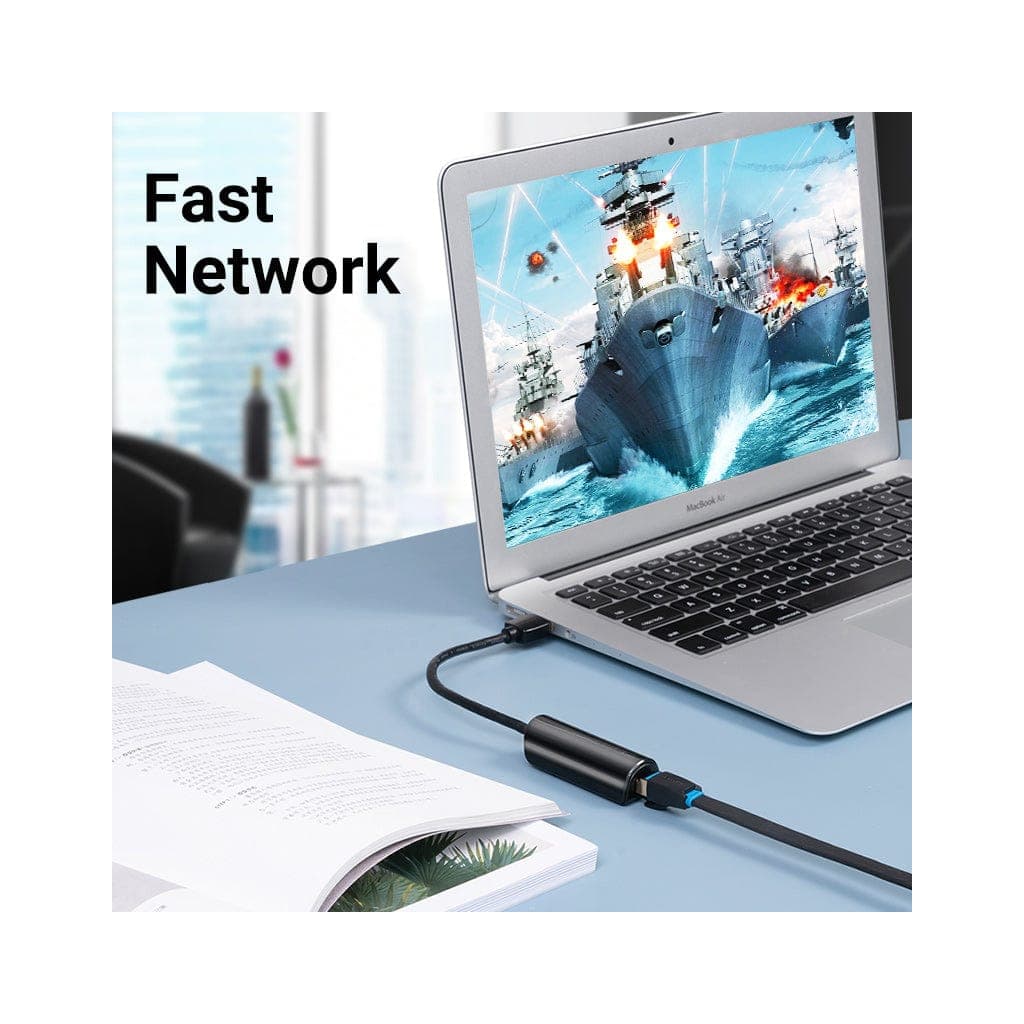 Перехідник USB 3.0 AM to RJ45 Ethernet 1000Mbps 0.15m ABS black VENTION (CEHBB)