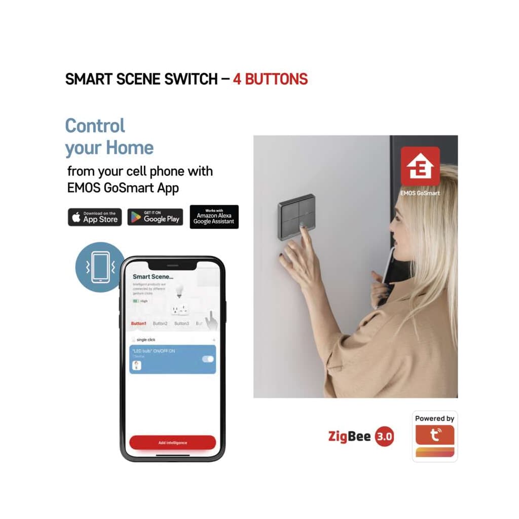 Розумний вимикач EMOS H5016 4 buttons ZigBee 3.0 Black (H5016)