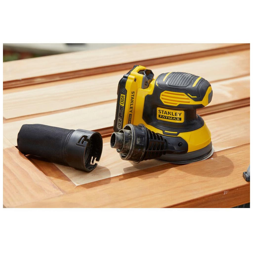 Шліфувальна машина Stanley ексцентрикова акумуляторна FatMax, безщіткова, Li-Ion 18В, 2Ah, 125 мм, 12000 об/хв (SFMCW220D1S)