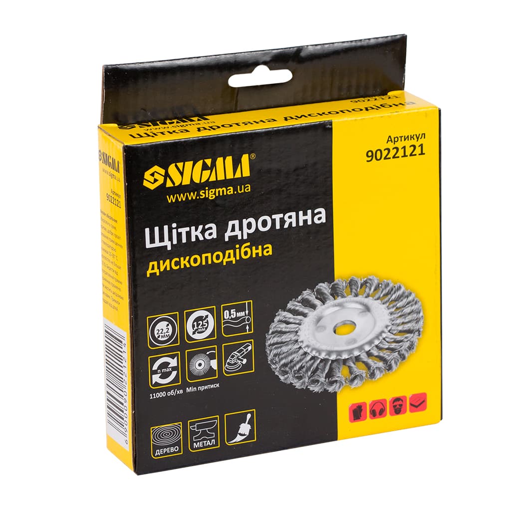 Щітка для електроінструменту Sigma дротяна дископодібна 125мм 22.2мм сталева кручена 9022121 (9022121)