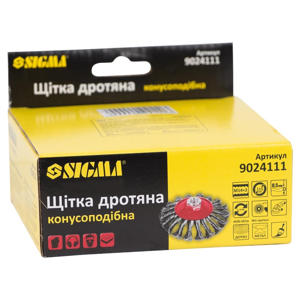 Щітка для електроінструменту Sigma дротяна конусоподібна 115мм М14x2мм сталева кручена 9024111 (9024111)