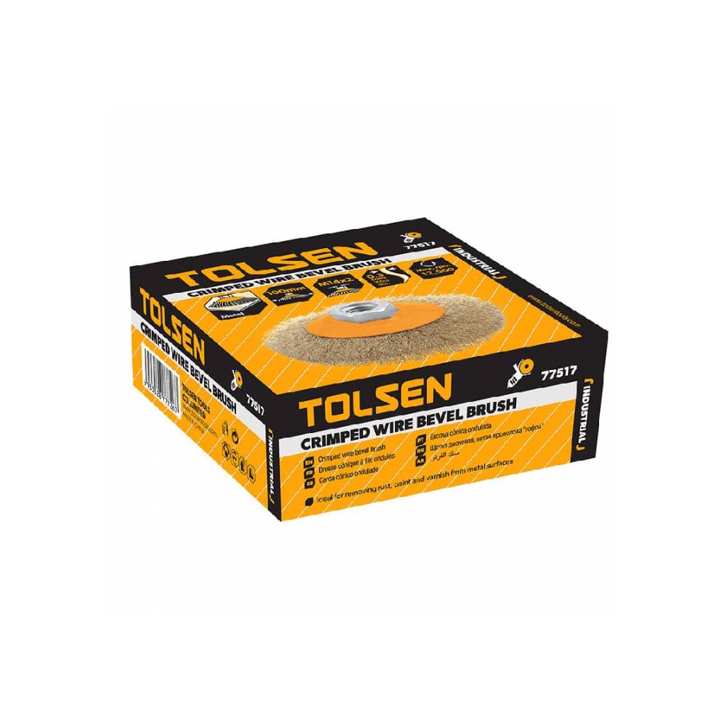 Щітка для електроінструменту Tolsen конічна 100 мм М14, гофрований латунований дріт 0.3 мм (77627)