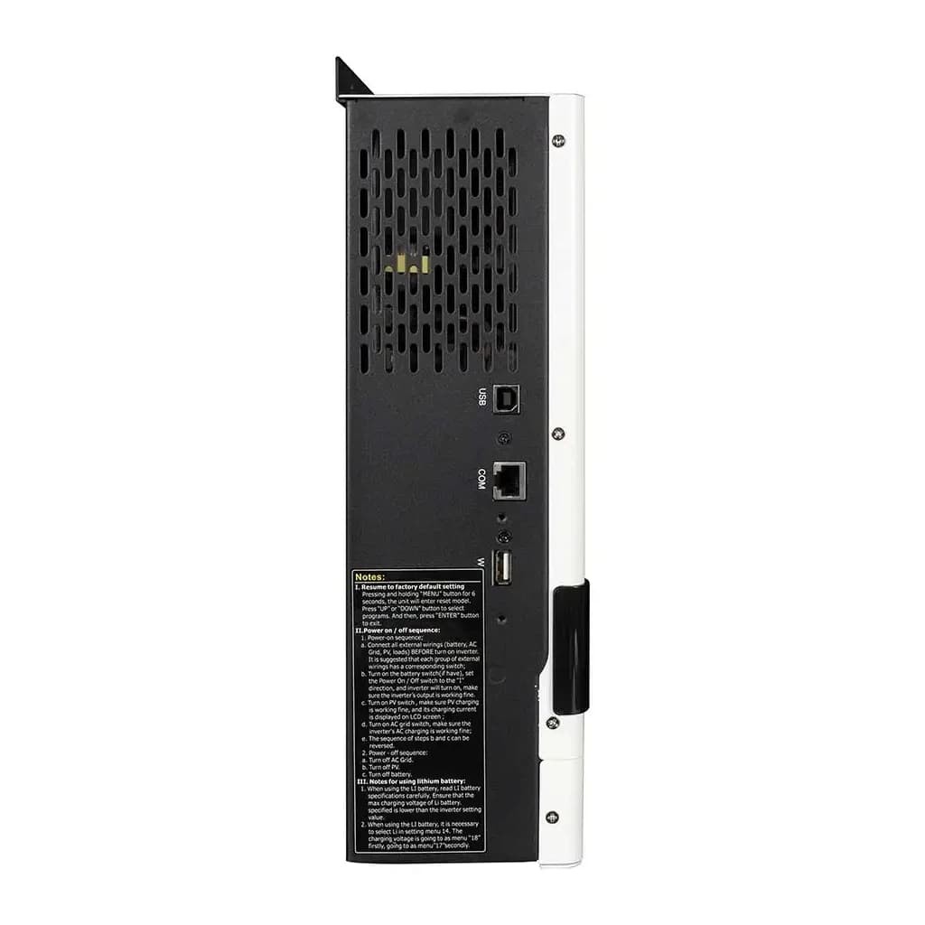 автономний, 1 фаза, Потужність інвертора (активна) - 3.2 кВт, 30 - 128 В, 98%, вентилятор, 367 x 318 x 121 мм