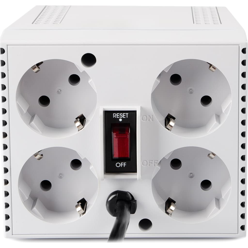 Спосіб установки - підлоговий, настільний, потужність, Вт - 600 Вт, потужність, ВА - 1200 VA, мінімальна вхідна напруга, В - 176 В, максимальна вхідна напруга, В - 264 В, кількість розеток - 4, відображення значень вхідного/вихідного напруг - світлодіод