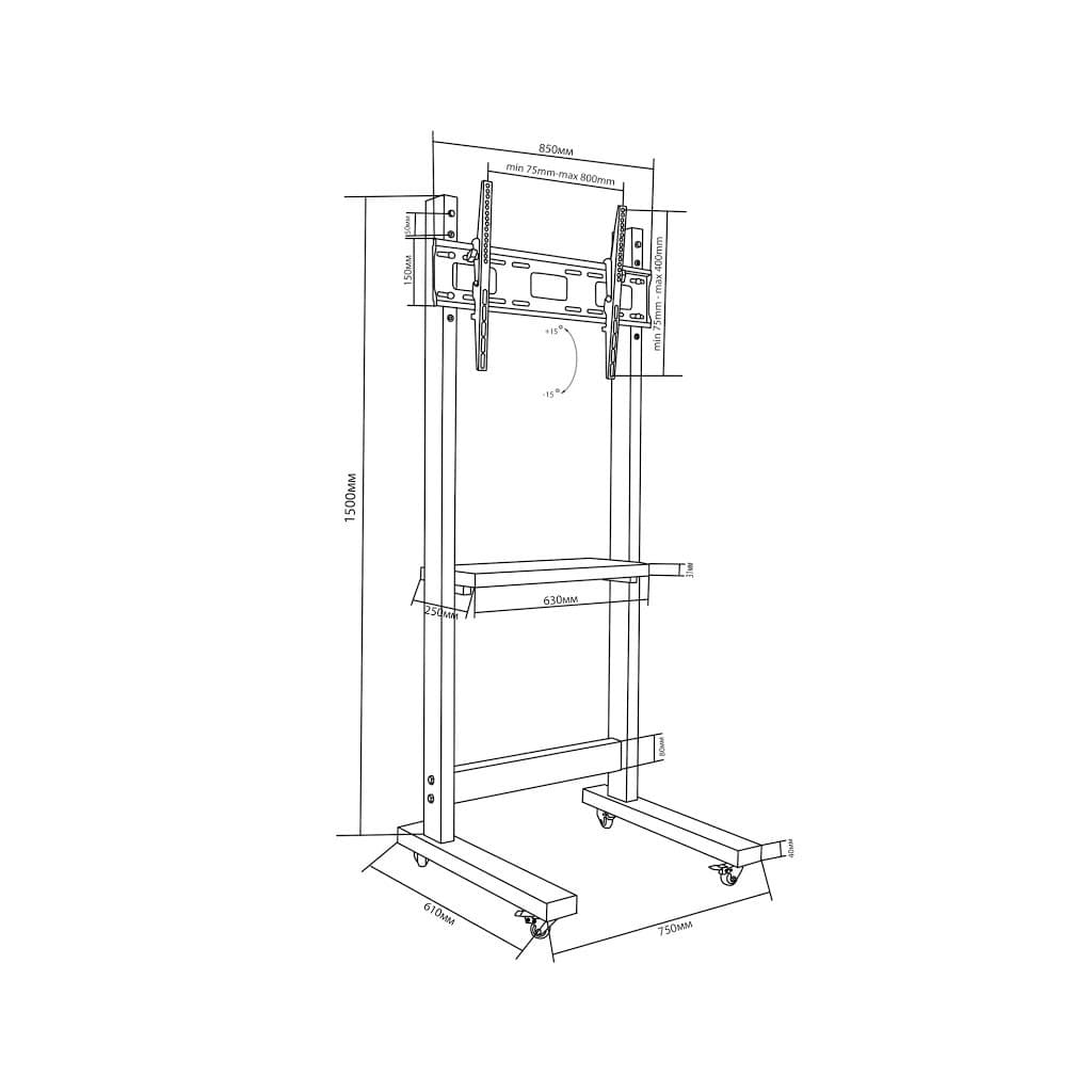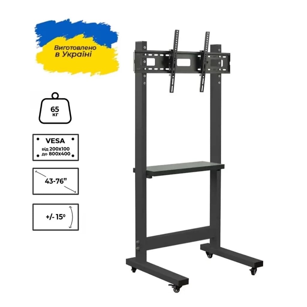 200 x 200, 200 x 100, 300 x 200, 300 x 300, 300 x 100, 400 x 200, 400 x 300, 400 x 400, 400 x 100, 600 x 200, 600 x 400, 800 x 400, мінімальна підтримувана діагональ - 43", максимальна підтримувана діагональ - 76", Регулювання - нахил, Кут нахилу - 12° ~ -12°, Кількість ступенів свободи - 1, чорний