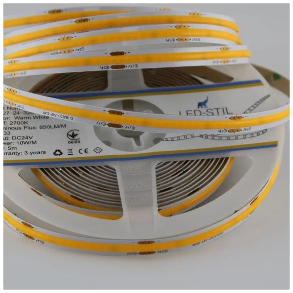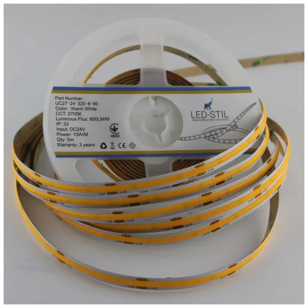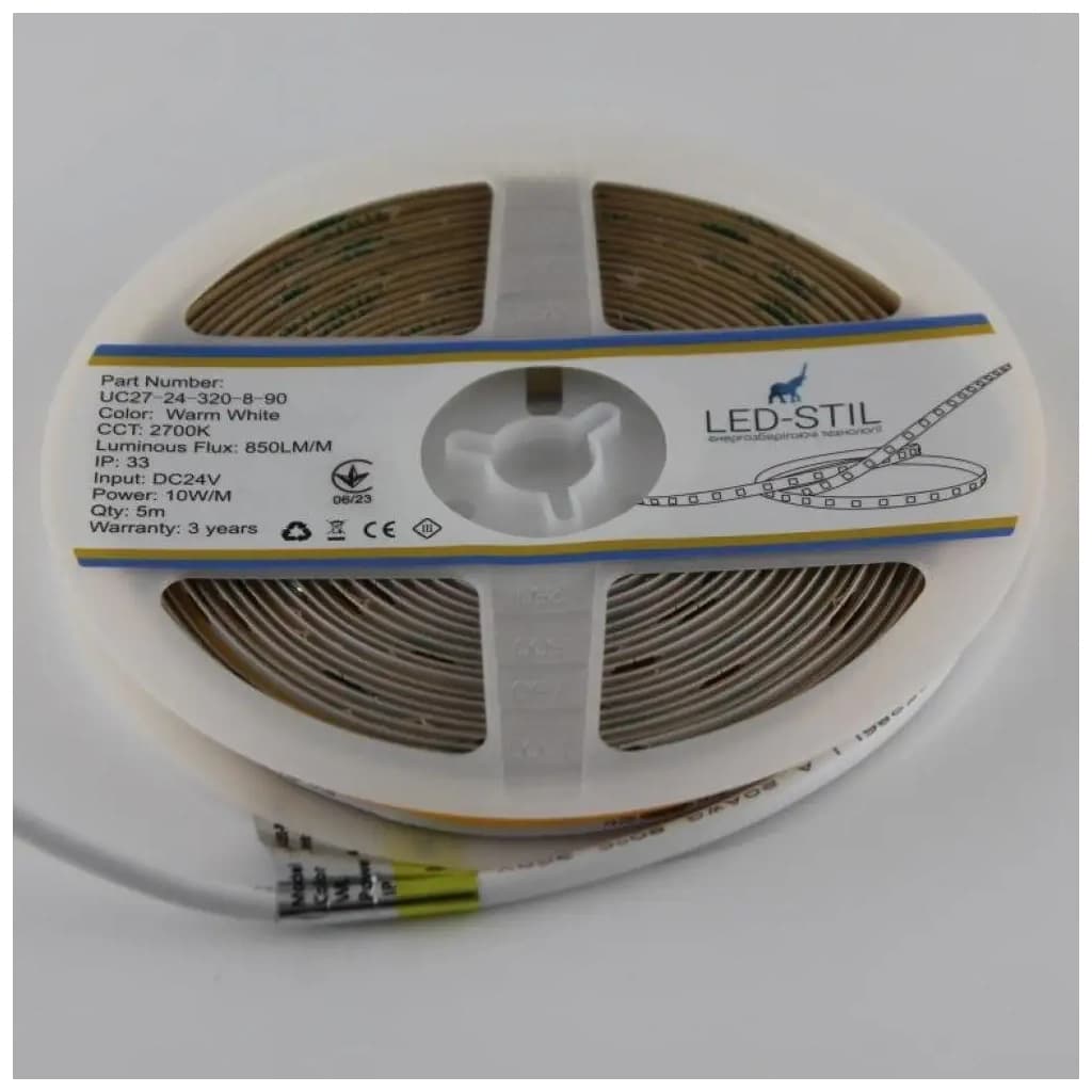 Світлодіодна стрічка LED-STIL 2700K 10 Вт/м COB 320 діодів IP33 24 Вольта 850 lm тепле світло (UC27-24-320-8-90)