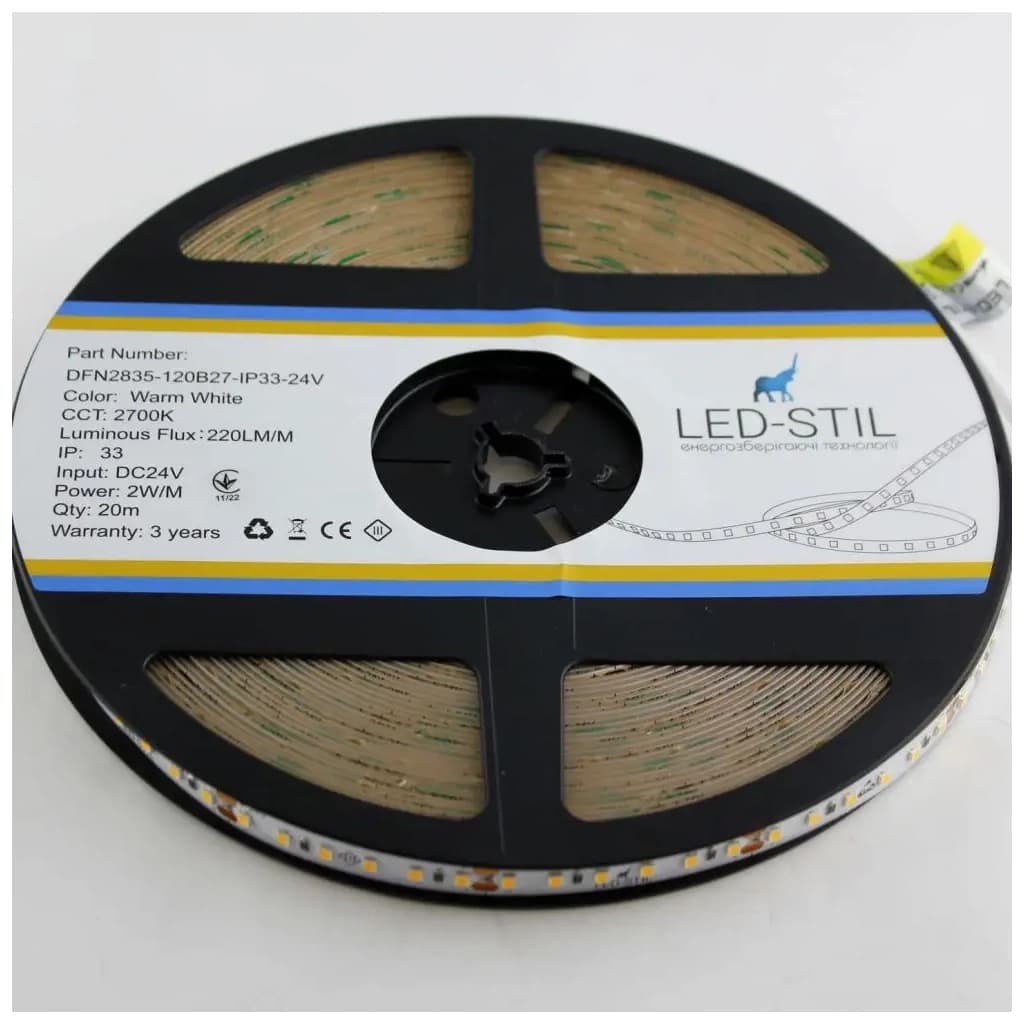 Світлодіодна стрічка LED-STIL 2700K 2 Вт/м 2835 120 діодів IP33 24 Вольта 220 lm (DFN2835-120B27-2w-IP33-24V)