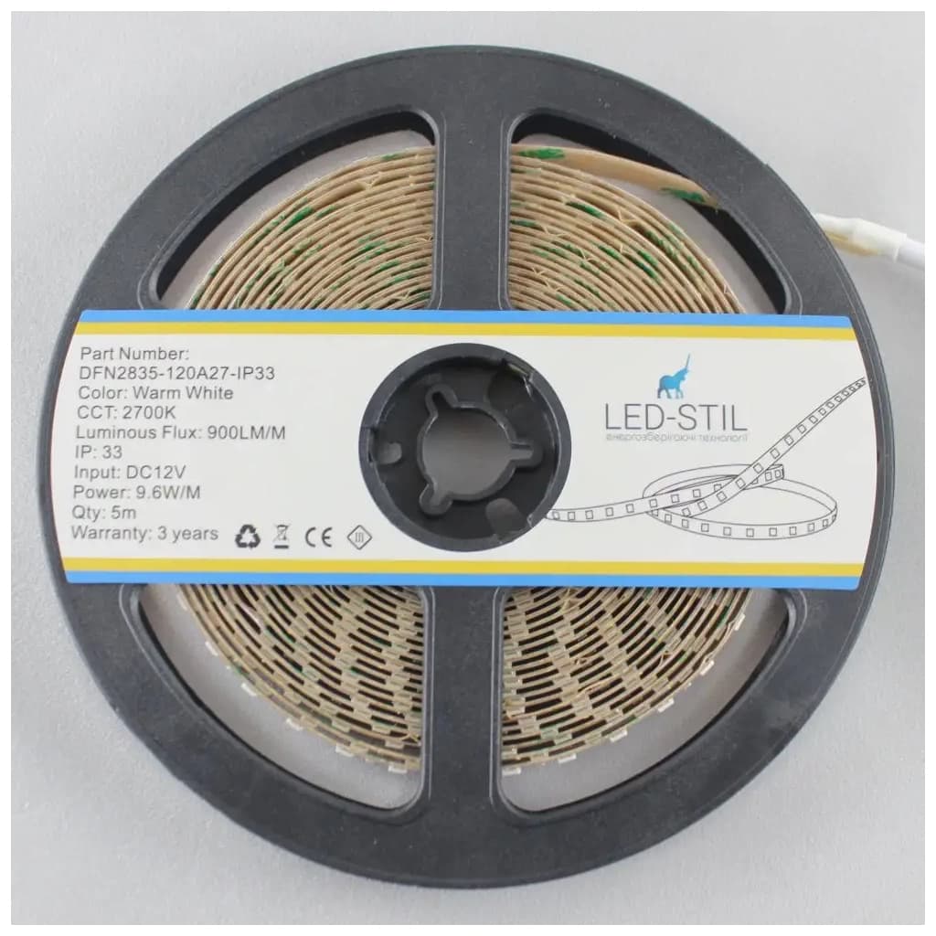 Світлодіодна стрічка LED-STIL 2700K 9,6 Вт/м 2835 120 діодів IP33 12 Вольт 900 lm (DFN2835-120A27-IP33)