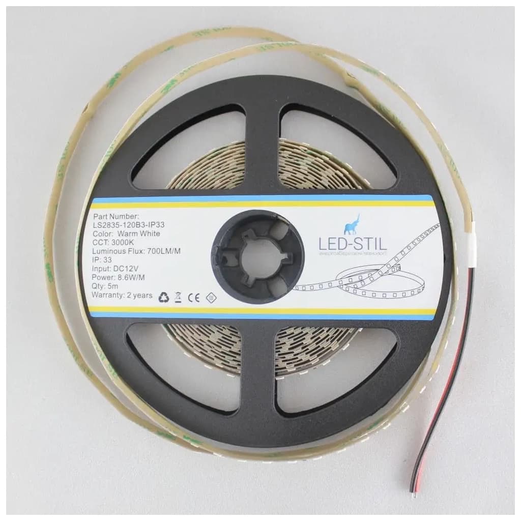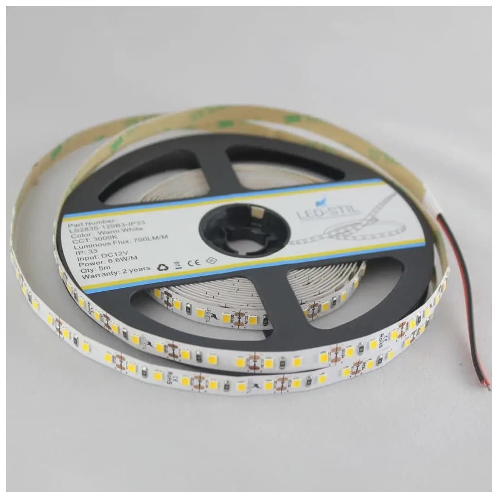Світлодіодна стрічка LED-STIL 3000K 8,6 Вт/м 2835 120 діодів IP33 12 Вольт 700 lm (LS2835-120B3-IP33)